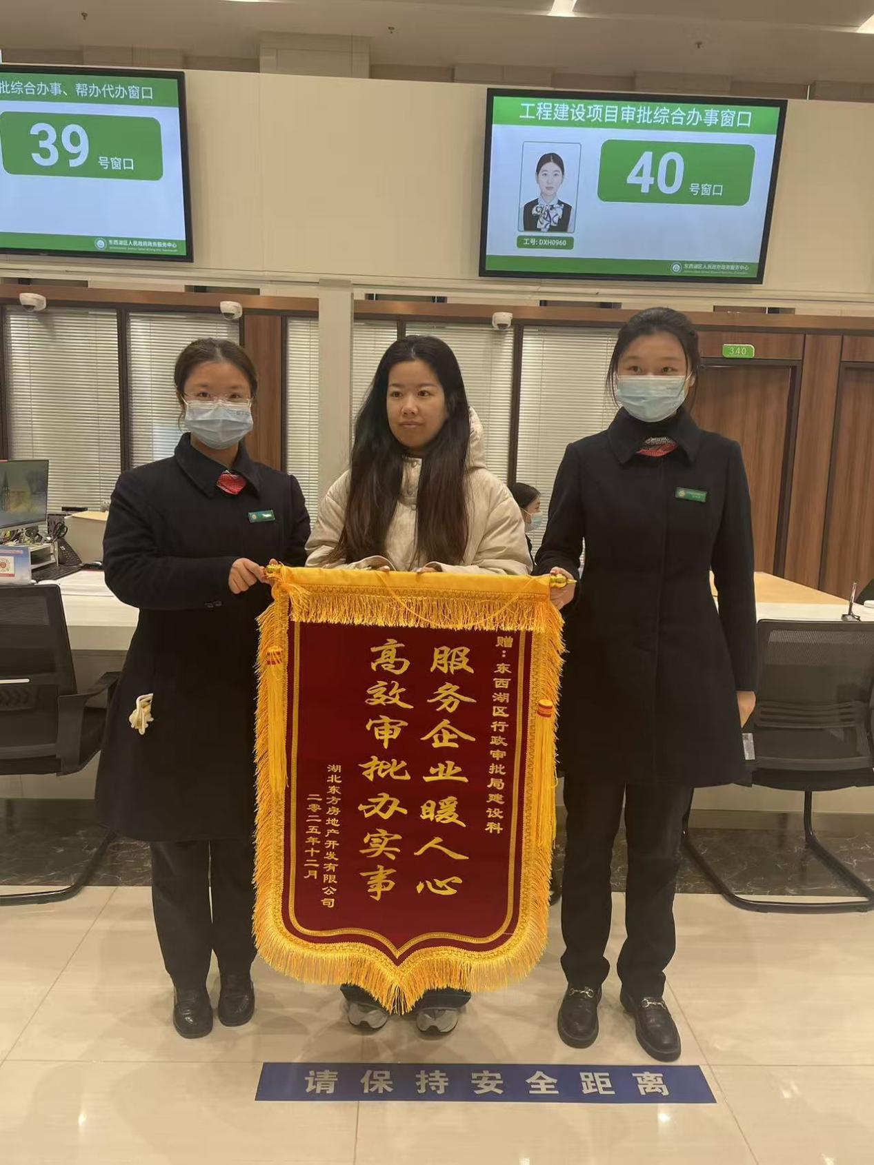 “过去办理人防审批和建筑工程施工许可证,需要分别提交材料、排队等候,耗时较长。现在一个窗口就能同步办理,真是太方便了!”近日东西湖区行政审批局建设工程项目审批科窗口成功通过“人防施工许可联合办理”新模式,助力某重点企业项目快速落地,企业负责人专程送来“高效审批办实事,服务企业暖人心”的锦旗,对窗口工作人员专业、高效、暖心的服务表示感谢。