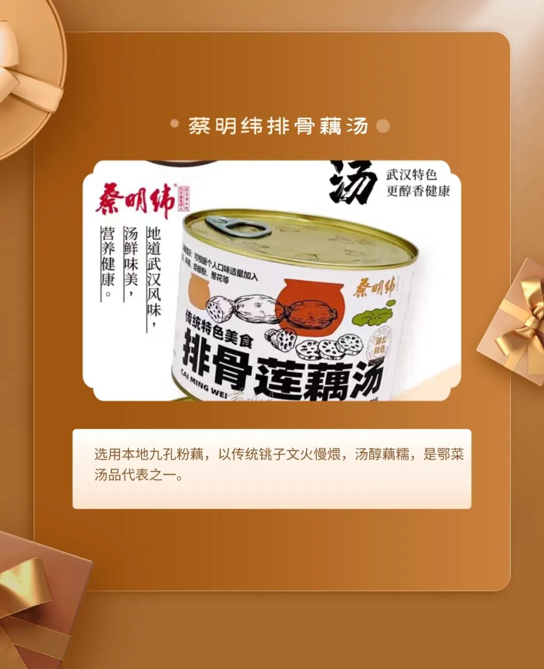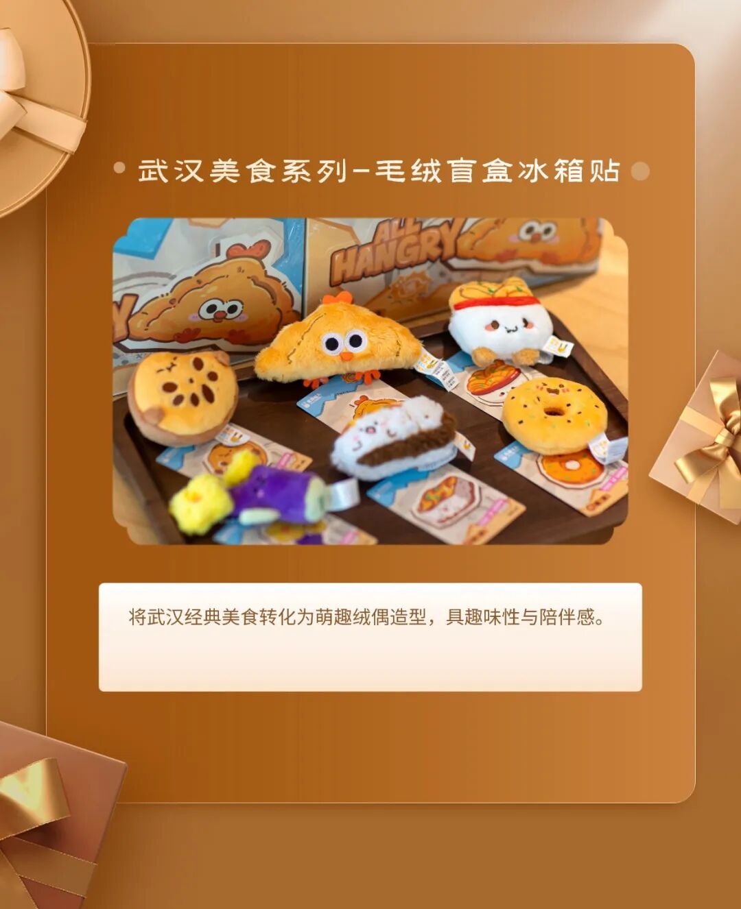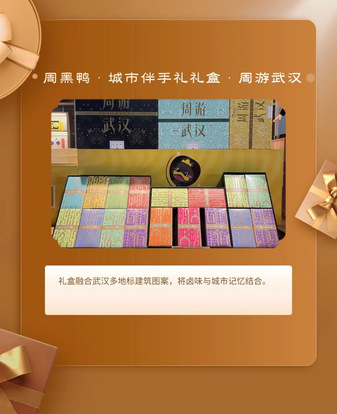 十大伴手礼:百里挑一武汉味道瓜子伴手礼盒、玫瑰花饼/鲜花饼、周黑鸭·城市伴手礼礼盒·周游武汉、武汉美食系列−毛绒盲盒冰箱贴、蔡明纬排骨藕汤、柏泉府河边腊货礼盒、大漆小葫芦挂件、柏泉龙芽、非遗缠花·梧桐叶胸针&发簪、瓷砖冰箱贴−−武汉地标系列。