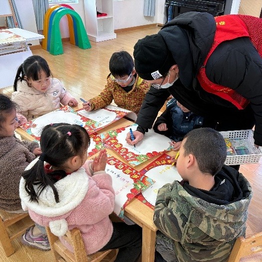 活动当天,社区工作人员与幼儿园老师携手合作,指导孩子们进行新年主题绘画创作。课堂上,孩子们用五彩斑斓的画笔描绘出自己心中的新年景象——有绚烂的烟花、喜庆的红灯笼、温馨的家庭团聚场景、美好的新年祝愿语……现场洋溢着欢乐的氛围,孩子们在轻松愉快的环境中自由发挥,展现了丰富的想象力和艺术天赋。