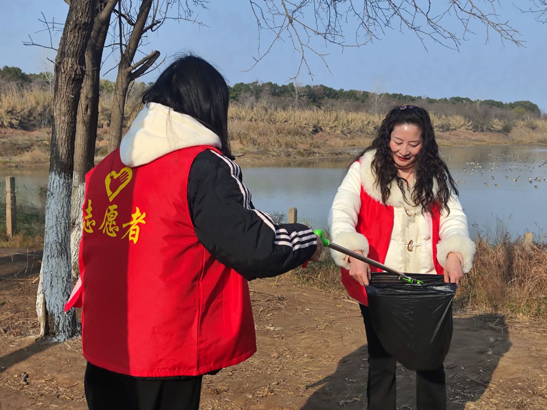 在武汉市全面推进“无废城市”建设、聚力打造人与自然和谐共生美丽画卷的背景下,天鹅湖湿地作为府河湿地的核心区域,其洁净优美的生态环境不仅关乎万余只候鸟的冬日栖息,也承载着广大市民对观鸟休闲的美好期待。为积极响应“无废”理念,擦亮湿地生态底色,1月6日,在天鹅湖社区党总支的牵头下,联合“红马甲”志愿服务队、湖北汉塑管业集团有限公司、武汉市苗业有限公司等各方力量,来到府河湿地观鸟台周边开展环境卫生志愿清洁活动,以实际行动凝聚共建共治共享合力。