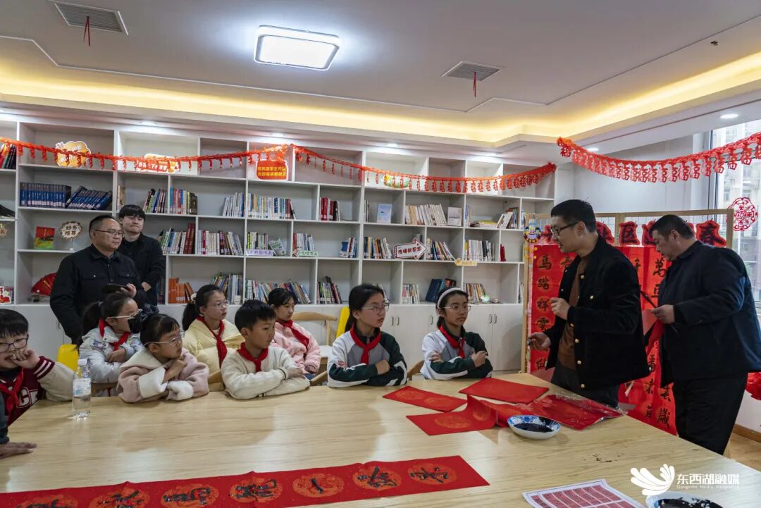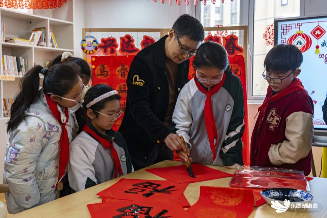 活动现场翰墨飘香,暖意融融。区文化馆书法老师带来一堂生动的非遗小课堂,细致讲解春联的平仄对仗与书写技巧,带领大家沉浸式领略传统文化的深厚魅力。实践环节中,社区青少年与快递员代表在老师指导下铺纸运笔、挥毫书写,一副副春联与“福”字在合作中渐次呈现,浓浓年味与温情流淌于笔墨之间。