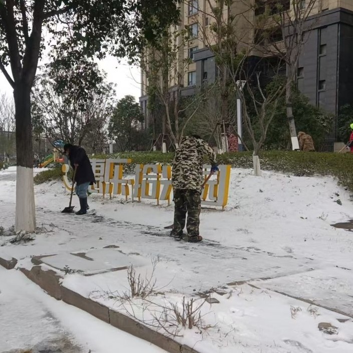 1月19日晚10时许,当第一阵雪籽飘落,区园林部门迅速启动应急响应,绿地内开展全方位巡查与处置。在口袋公园等游园广场内的桥梁及坡道等易滑区域,工作人员顶风冒雪铺设草垫、麻袋,截至20日早晨16时,累计铺设草垫麻袋2230余条,制作张贴防滑温馨提示牌60余张,捆扎竹子70余捆;双线巡查,守护绿脉除隐患。在保障公园、游园园路通行的同时,园林养护人员加大巡查频次,对辖区绿地、行道树开展动态排查,重点关注香樟等常绿树种的积雪承压情况。采用人工轻摇枝干、软质工具清扫的方式清除枝叶积雪,避免积雪过重压折枝条;对出现倾斜的苗木及时加固支撑,对断裂枝条快速清理、清运,并通过粉碎车高效处理断枝,提升处置效率。从凌晨到清晨,抢险人员穿梭在主次干道,先后处置雨雪导致的树木倒伏、断枝隐患数十处,同步排查消除悬空断枝等次生风险,在保障原路畅通的同时,最大限度保护城市绿化成果。风雪不停,坚守不止暖民心。