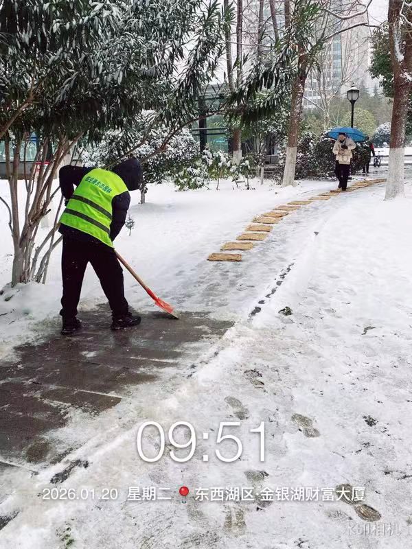 1月19日晚8点,4台铲雪车在公司院内集结完毕,40余名工作人员在岗待命。1月20日凌晨2点,在将军路执法中心,园林公司现场指挥员与街道共商除雪事宜。在公司党委的研究部署下,园林公司采取“分类实施、多管齐下”的应急策略,确保“人材机”配备到位,员工齐上阵,使用铲雪车、油锯等机械在区内道路进行除雪作业,昼夜在全区范围开展绿化巡查,组织人员在地铁口、公园、绿地、广场等人流量大的位置铺设草垫、麻袋防滑,并设置警示标志,同时加大巡查力度,支援将军路街道、网安学院铲雪。截至1月20日中午12点,园林公司共计投入人员120人次,铲雪车、油锯等机械十余台,融雪剂3吨,草垫、麻袋500条。园林公司全体员工闻令而动,坚守在冰雪应急、绿化一线,保道路畅通、保人民安全。