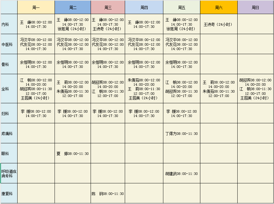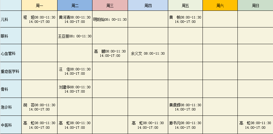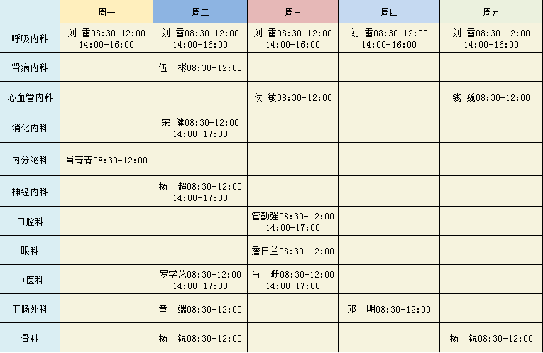 东西湖区人民医院2026年度专家排班
