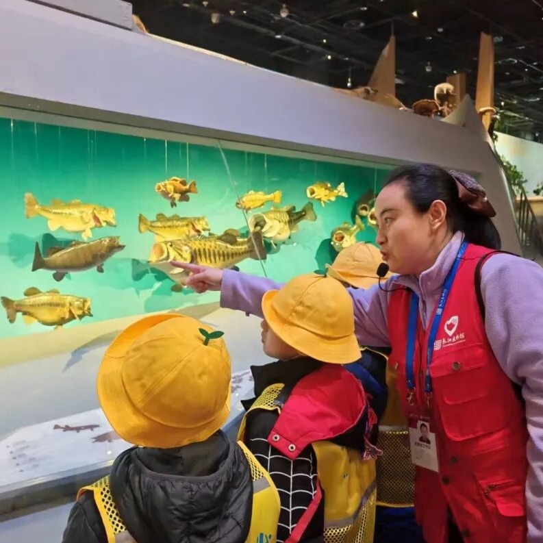 活动当天,孩子们身着统一服饰,在家长、康复师、特教老师及志愿者的全程陪伴下开启探秘之旅。欢迎仪式上,长江文明馆馆长为每个孩子送上长江文明吉祥物“江豚”,趣味儿歌互动则让孩子们快速融入集体,同时筑牢安全意识。