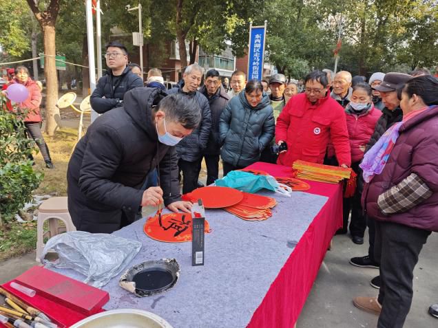 活动尾声,“暖粥传情”、“政策惠邻”、“翰墨送福”、“义诊义剪”特色志愿服务活动同步开展。社区工作人员为现场高龄老人、环卫工人等送上热腾腾的腊八粥,传递温暖关怀;社区干事集中宣讲最新惠民政策,开展安全用电、防止一氧化碳中毒、禁燃烟花爆竹等安全宣传,增强居民安全意识;草根书法家崔根生老师铺纸挥毫,写春联、送福字,为居民增添浓浓年味。理发师志愿者为老人、居民免费理发,用贴心服务解决居民实际需求,让大家在家门口享受到便捷周到的志愿服务。