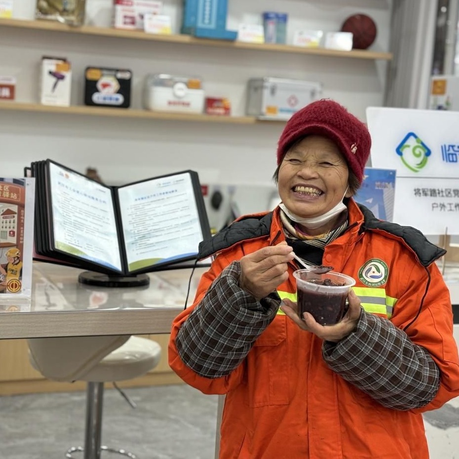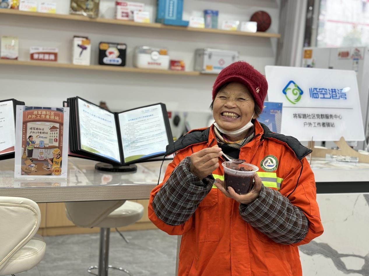 居民和辖区户外工作者品尝腊八粥