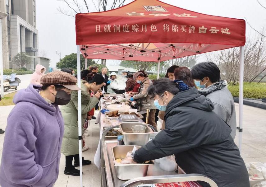 1月26日腊八佳节,云上城小区处处升腾着热闹的烟火气,将军路街杨柳社区携手小区物业,以一碗碗暖心腊八粥、一桌桌地道武汉年味,为居民送上冬日温情,更将关怀送到困难居民家中,让这个腊八节既有烟火热闹,更有暖心温度。