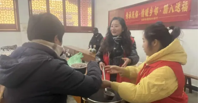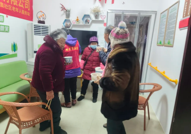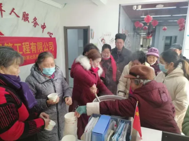 茅庙集社区则创新采用“站点服务+上门精准关怀”模式,在老年人服务站内,工作人员为老人端粥添饭、讲解腊八民俗;同时,入户关怀组携带保温粥品上门慰问独居老人、困难家庭等,并同步开展冬季安全科普,真正实现“暖胃更暖心”。