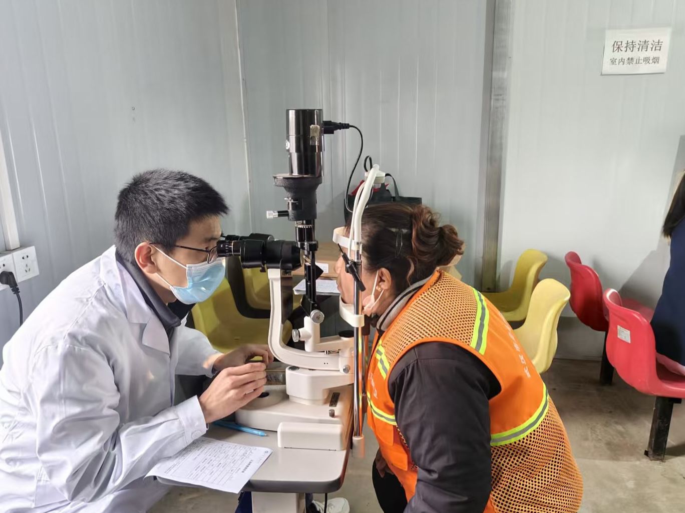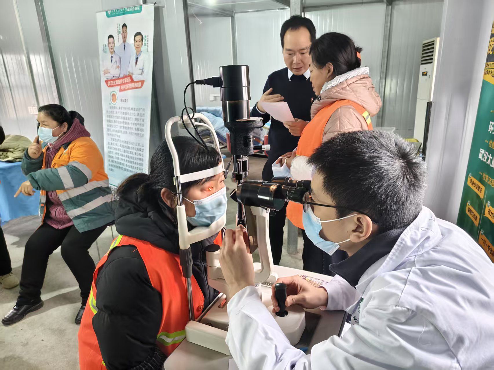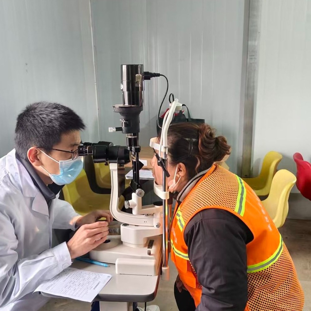 讲座结束后,医护团队借助专业设备为环卫工人进行细致筛查,大家在工作人员引导下,依次完成基础视力检测、裂隙灯检查等项目。医护人员对每位参与者的检查结果逐一分析,给出个性化护眼建议与诊疗指导。此外,医院还特别准备了10张免费眼科体检卡,赠予有进一步诊疗需求的环卫工人,为他们的眼健康再添保障。