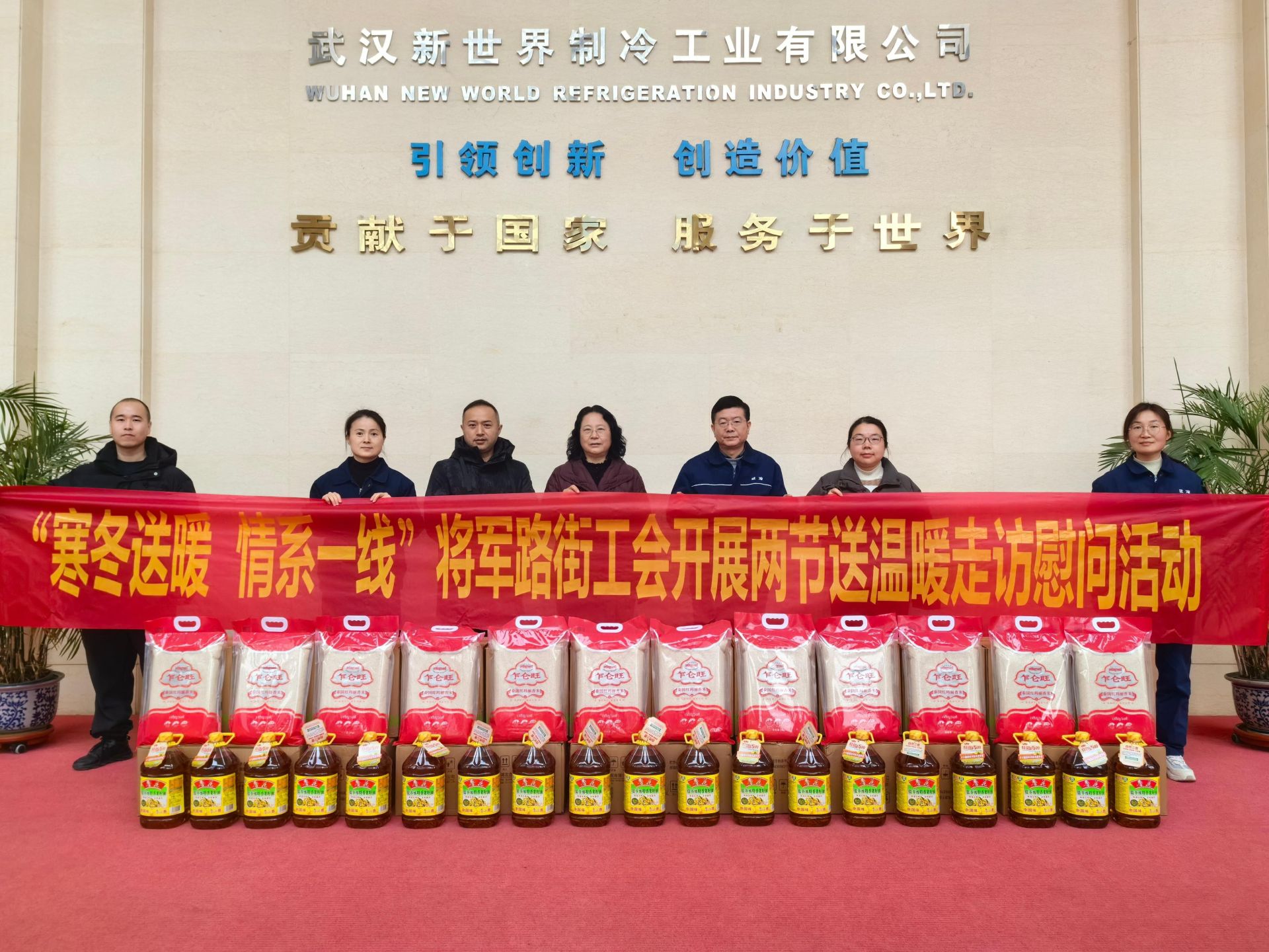 此次慰问主要走访武汉新世界制冷工业有限公司、湖北华育文化发展有限公司、冰山松洋冷链设备(武汉)有限公司、武汉精益制衣有限公司等企业,将慰问品送到一线工作人员的手中,嘱咐大家要注意防护,做好防寒保暖。关怀的话语让一线员工倍感温馨,纷纷表示将以更加饱满的热情和昂扬的斗志投入到工作中来,齐心协力为区域建设添砖加瓦。