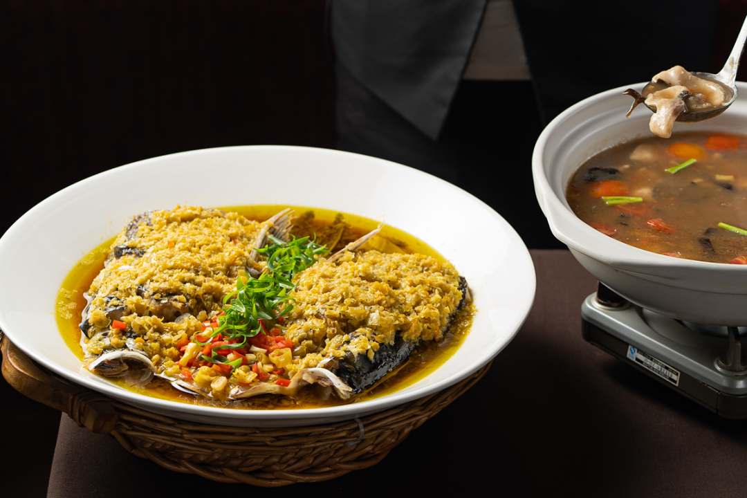 ✨楚粤结合的鲜美:翅汤东星斑翅汤浓郁鲜醇,东星斑鱼肉细嫩无刺,入口滑嫩回甘;家烧鮰鱼烧得酱香浓郁,鱼肉吸饱酱汁,鲜而不腻;老武汉人爱的筒子骨藕汤藕块粉糯拉丝,骨汤熬得浓白醇厚,是年夜饭的暖心标配。