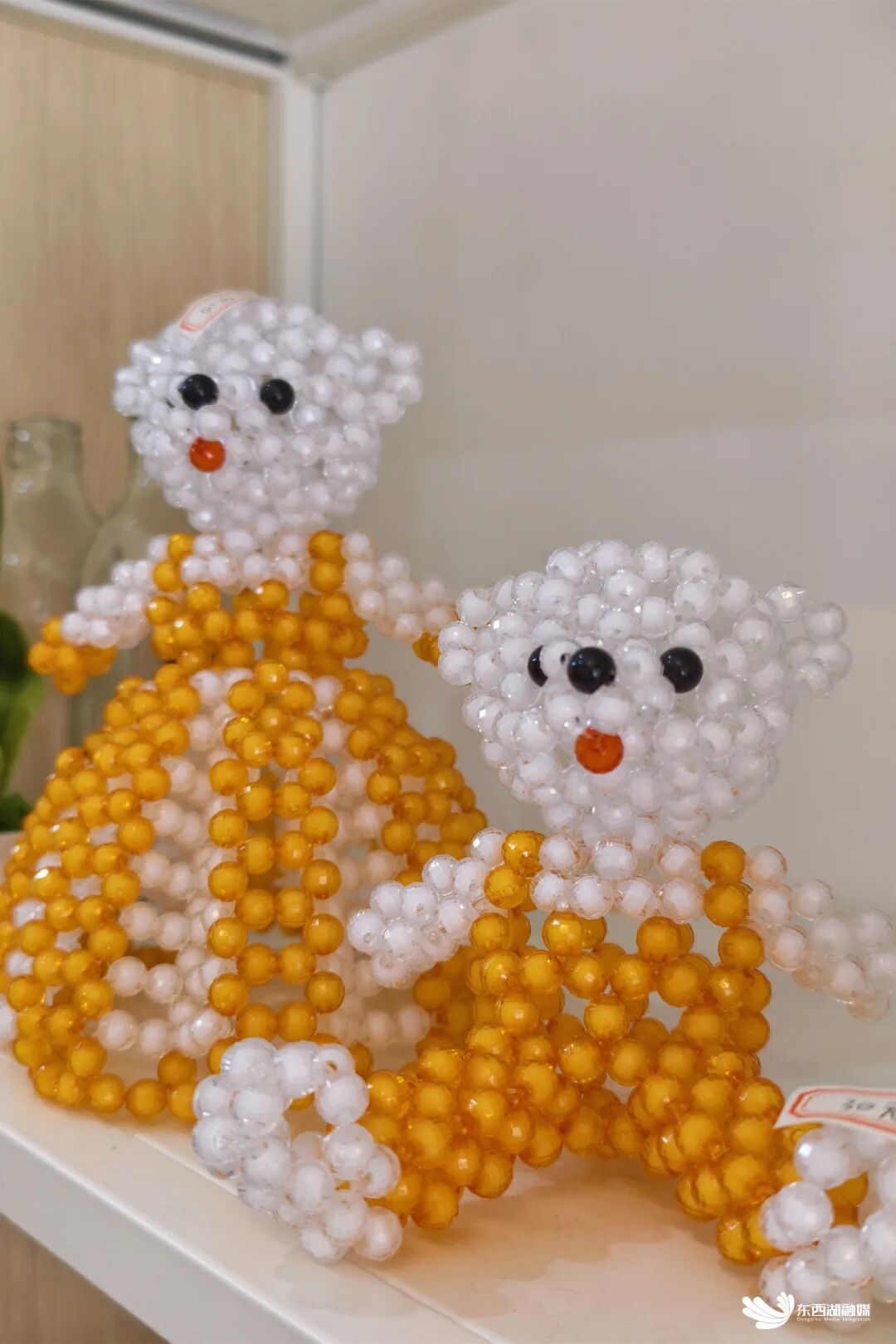 身后的架子上,陈列着五彩斑斓的手工串珠作品:盛开的花束、憨态可掬的娃娃、鲜亮逼真的水果……这里,是春风咖啡屋,一个属于特殊青年的社交天地与技能课堂。