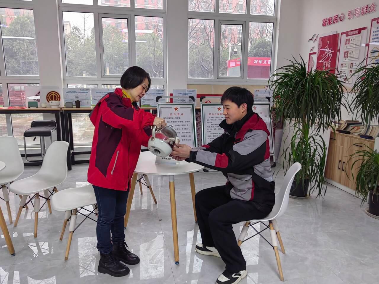 活动当天,社区工会驿站内暖意融融。火红的春联、“福”字和手工制作的新年挂饰倾注了真诚的赞美与美好的祝愿。“爱岗敬业家业兴,无私奉献城市美”“风雪无阻送安康,汗水浇灌城市春”一副副寓意吉祥、讴歌劳动的春联,一个个饱满圆润的“福”字,洋溢着文化韵味,也承载着对户外劳动者辛勤付出的深切礼赞。