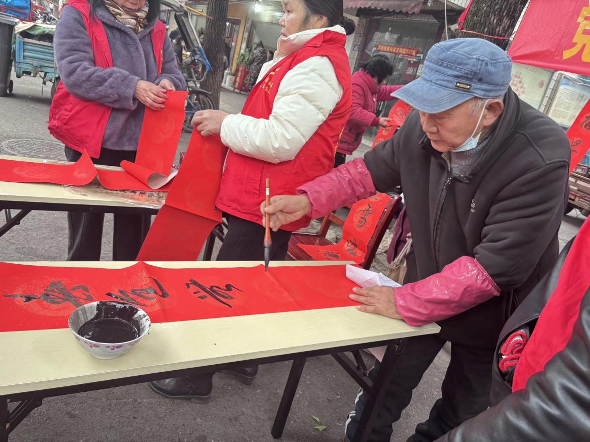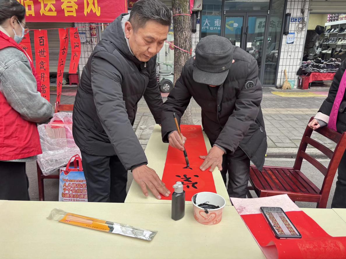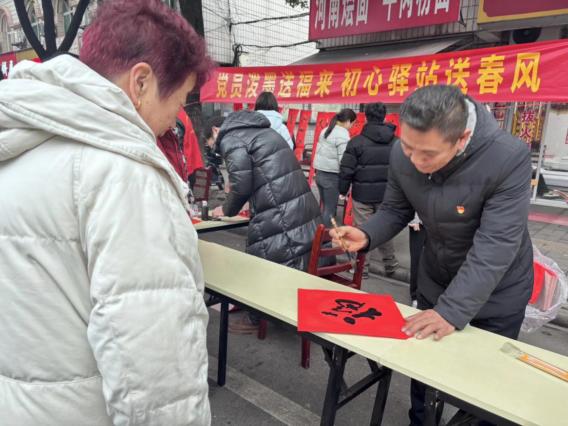 党员志愿者与社区工作人员还分工协作,把手写春联、福字逐一送到社区高龄老人、老党员、困难家庭及坚守一线的新业态群体代表手中,把新春祝愿送到群众心坎上。