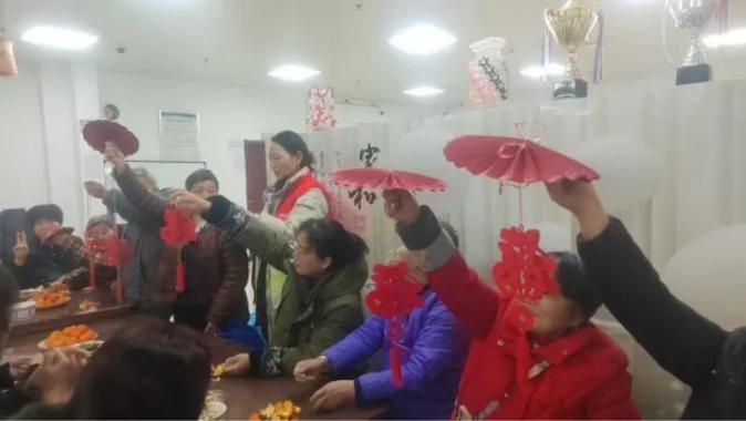 2月9日,柏泉街红卫社区老年人服务站内张灯结彩、喜气洋洋,一场主题为“巧手叠福字 共话幸福年”的新春茶话会在此温馨举行。社区老年朋友们欢聚一堂,在红灯笼、中国结的环绕中品茶叙旧,共迎新春佳节。