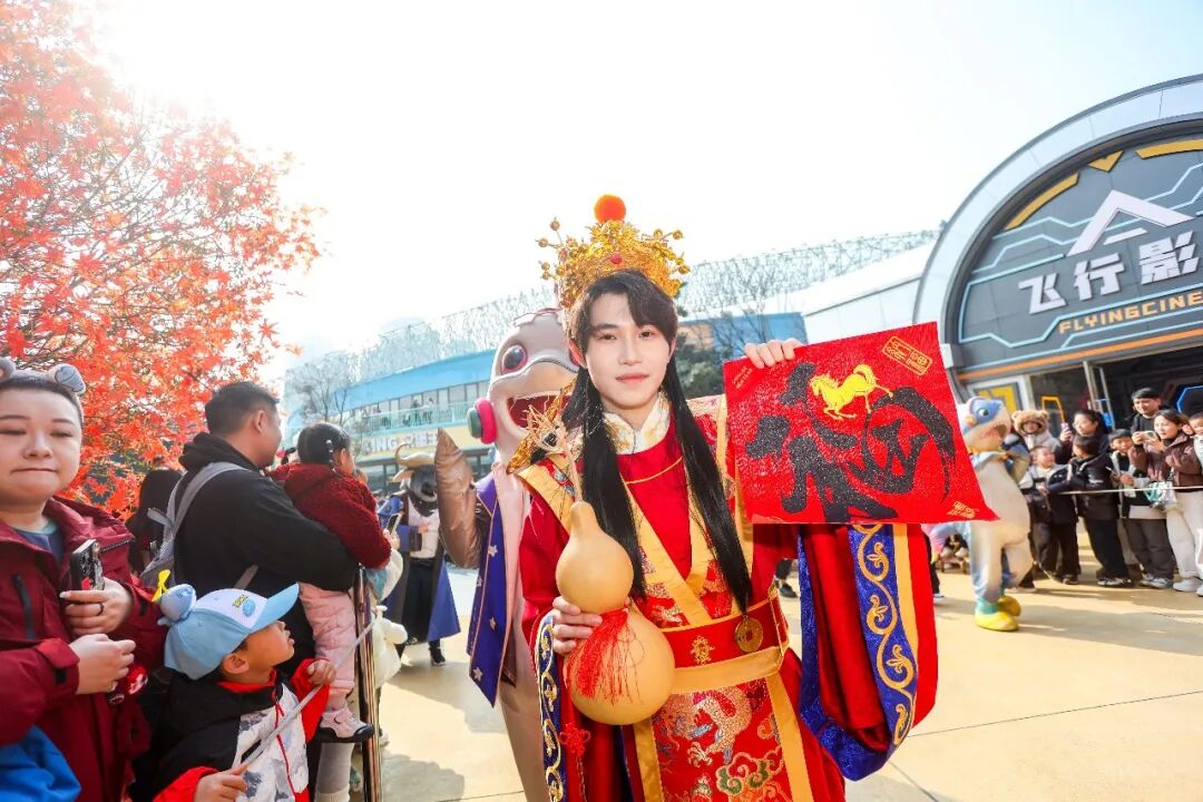 陆上巡游,偶遇“五福”送惊喜。由福、禄、寿、喜、财化身的高颜值NPC,会组成巡游队伍,载歌载舞地出现在园区各处。遇到他们,一句新春祝福,一个合影互动,就可能收获意外的小福礼。