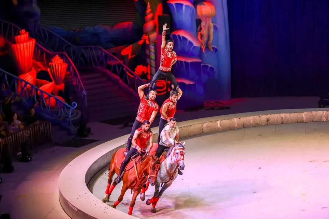 每日上演的“极地大马戏”值得预留时间!80分钟演出,集马术、环球飞车、生死魔轮等世界级节目于一体,惊险与趣味并存。