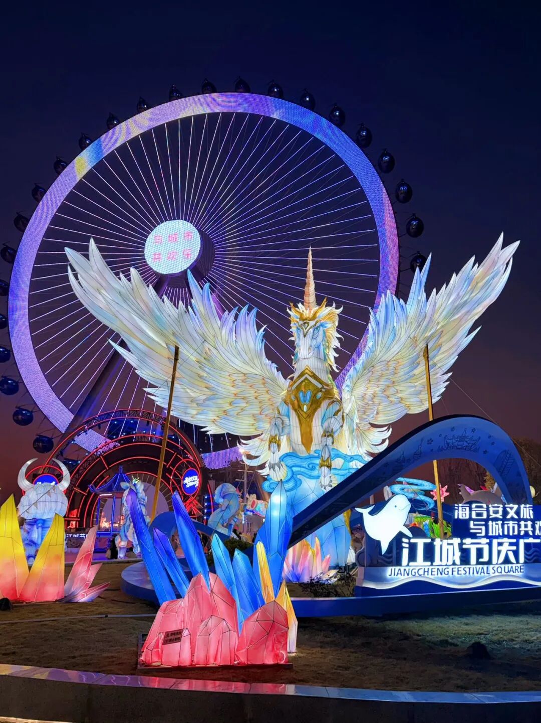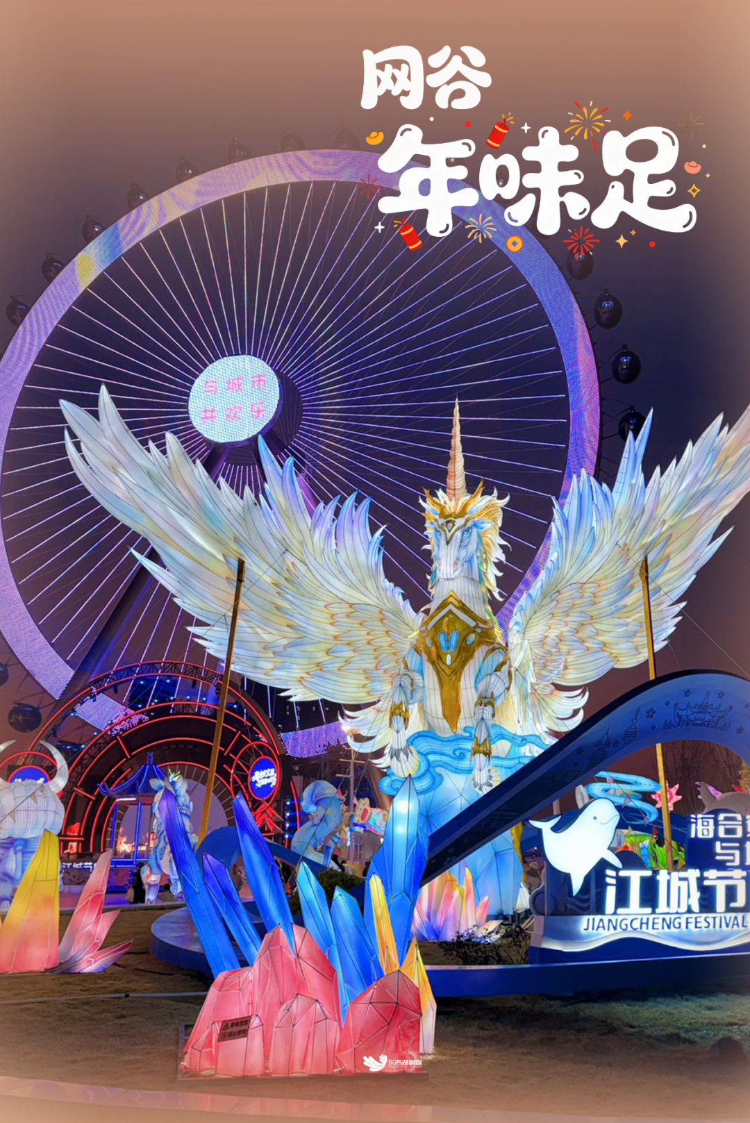 另一项免费活动是海洋非遗灯会。10米高的“银翼飞马”灯组是视觉中心,瑞兽、十二生肖、奇幻丛林三大主题区的花灯各具特色,光影交织,拍照非常出片。
