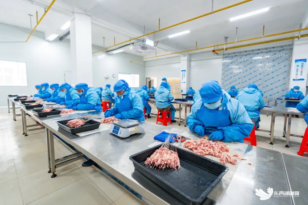 在易考鲜生产车间里,除了忙碌的工人,一个固定的手机支架已成为一道独特的风景。镜头对准的,正是工人手中精准、高效的穿串作业全过程。