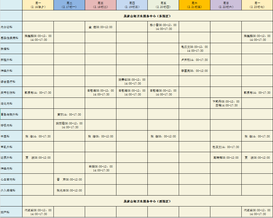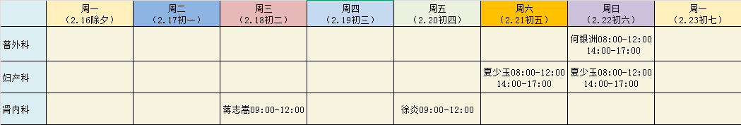 专家坐诊丨2月16日-2月23日 专家坐诊安排