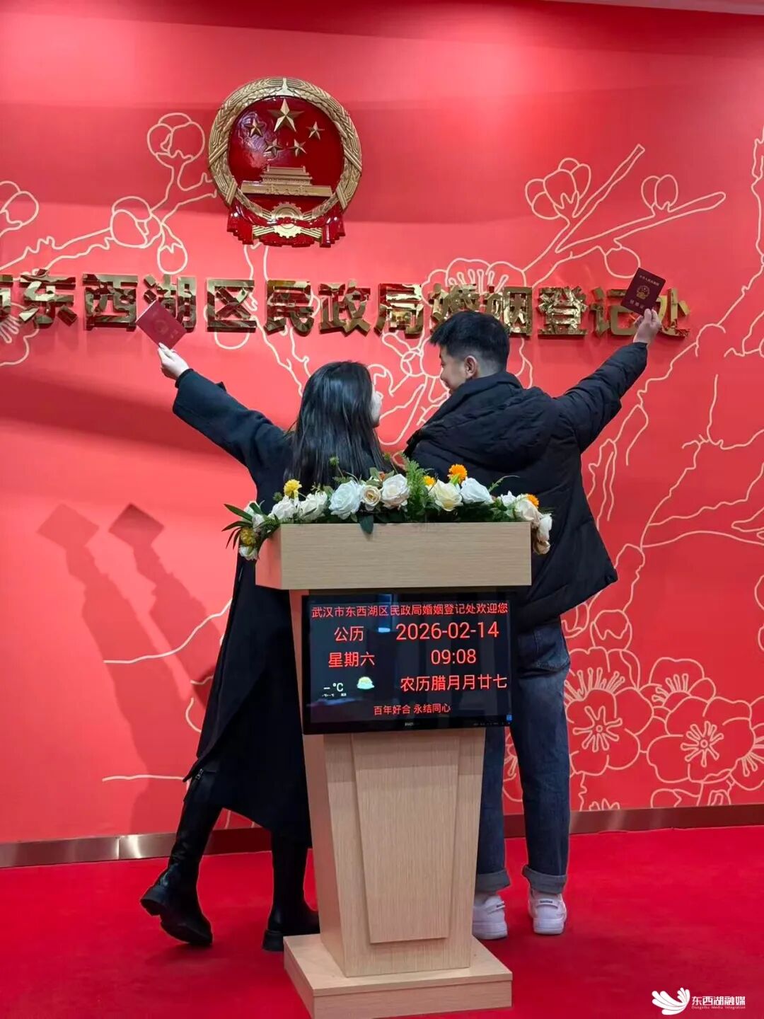 2月14日,东西湖区民政局婚姻登记处迎来2026年首个结婚登记高峰。截至当日下午5时,共有125对新人顺利办理结婚登记手续。