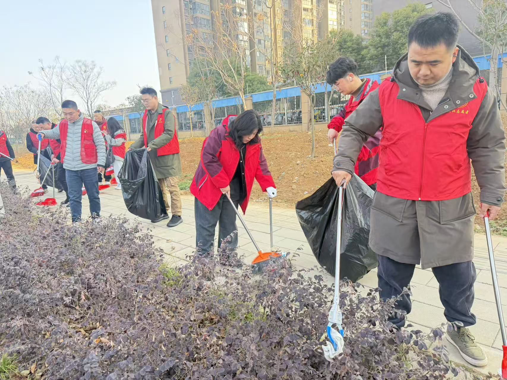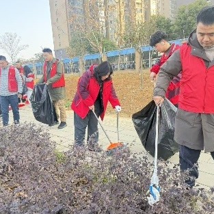 大家身着红马甲,手持清洁工具,如同散落在社区各处的“红色音符”。他们有的俯身钻进绿化带,清理隐藏的枯枝败叶;有的合力搬运楼道间积存的旧物,打通安全通道;有的则耐心向过往居民宣传节前防火、垃圾分类知识,传递清爽过年理念。经过大家的共同努力,社区路面更净了、楼道更亮了、公共空间更有序了,整个社区仿佛被精心擦拭过一般,焕发出清新透亮的光彩。