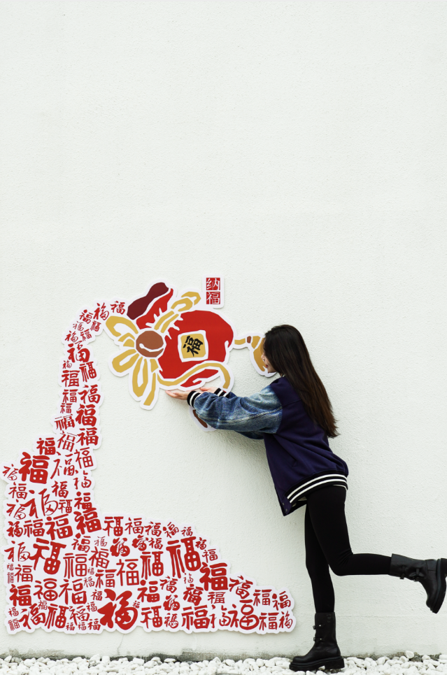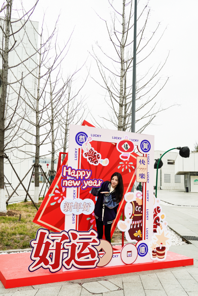远远望见临空港文化中心,会被“趴”在文化馆楼顶的巨型“提福小马”萌翻。它憨态可掬地探出脑袋,手里提着大红“福”字,仿佛向游人招呼——接福啦!