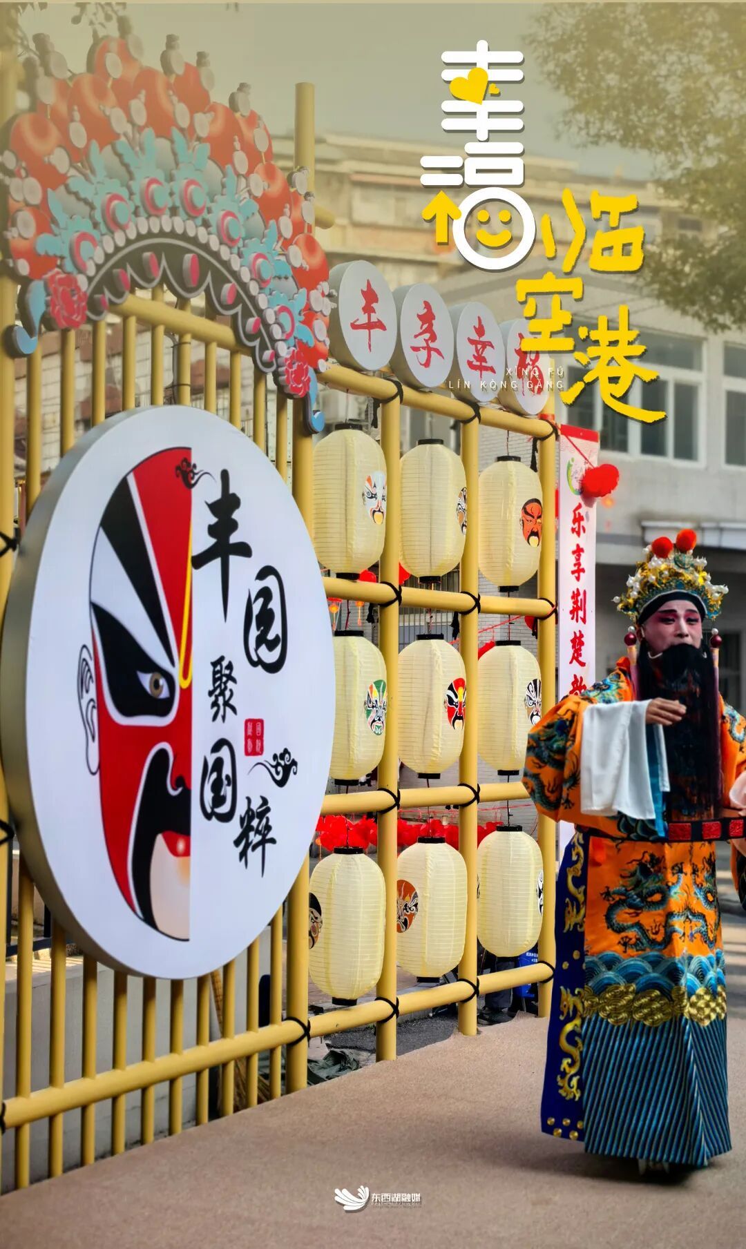 微型戏台朱栏彩绘,面积不足3平方米。“一方小戏台点亮烟火巷”“乐享荆楚韵和美吴家山”的楹联,与檐下“望见美好 丰享幸福”的横幅,表达了街坊的共同心愿。