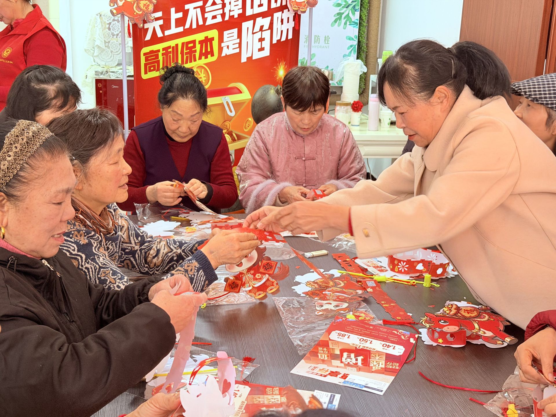 活动现场年味浓郁、热闹非凡,灯笼DIY环节吸引居民踊跃参与。社区提前准备好马年主题灯笼材料包,大家围坐在一起,按照步骤将灯笼骨架、灯面、挂绳、流苏等部件逐一拼接、组装,即可完成一盏精致喜庆的马年灯笼。大家默契配合,折片、卡扣、固定、悬挂,不一会儿,一盏盏形态规整、寓意吉祥的红色马年灯笼便顺利完成。居民们提着亲手拼好的灯笼,脸上洋溢着成就感与节日的喜悦,现场欢声笑语不断。