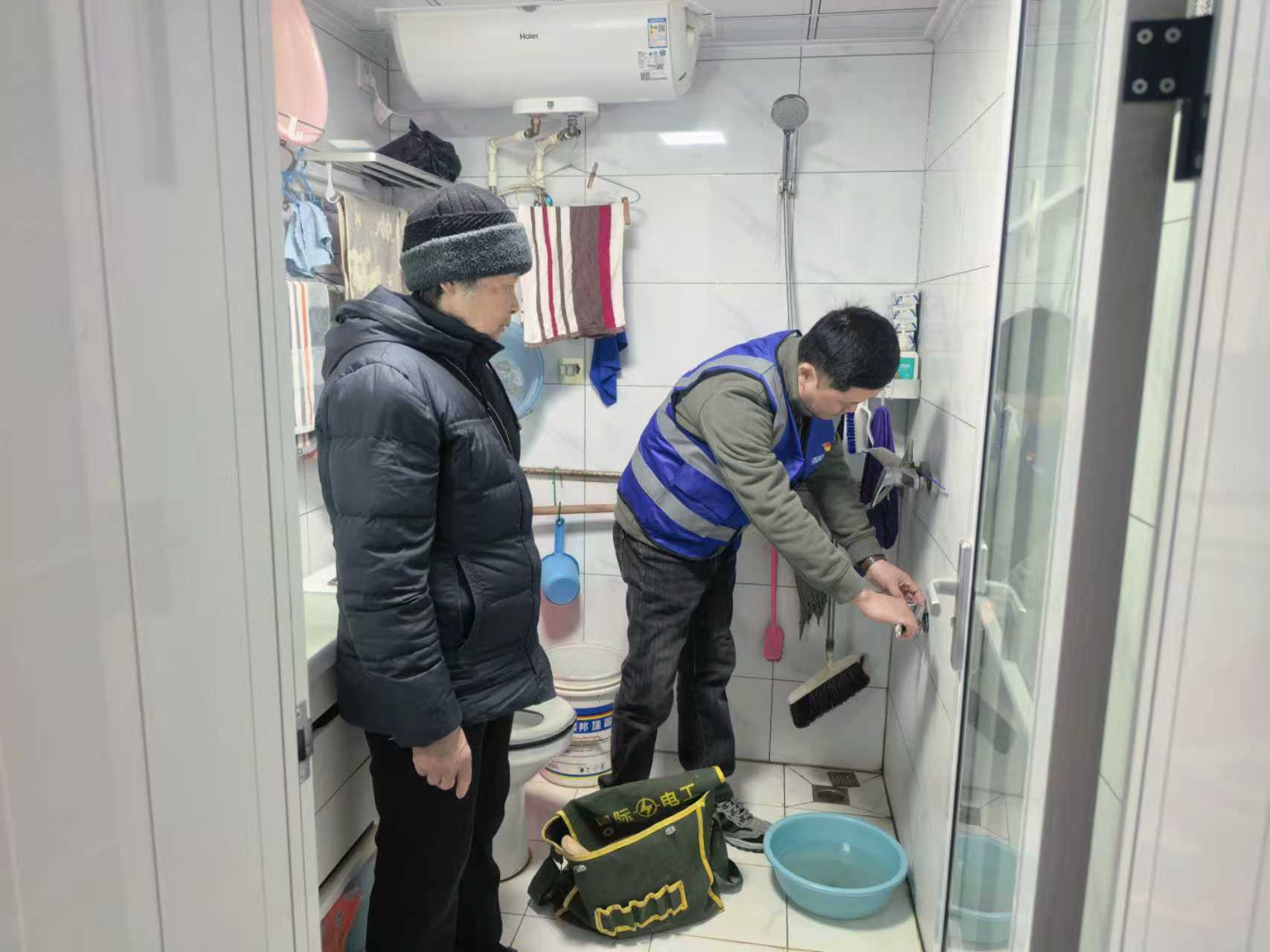 高龄老人范婆婆子女常年在外,家中墙装水龙头松动开裂、滴水不断,墙面地面常年潮湿。维修师傅卸下旧龙头、装上新水嘴、拧紧固定丝、开阀试通水,一套操作娴熟利落、一气呵成。困扰老人大半年的漏水问题当场解决,老人看着不再滴水的水龙头,脸上笑开了花,连连竖起大拇指,不住地道谢。