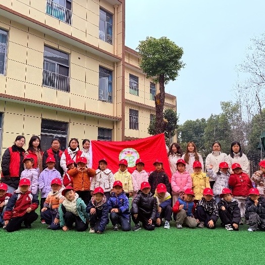 在老师和社区工作人员带领下,小朋友们佩戴小红帽,化身小小志愿者,手持卡通垃圾夹、环保垃圾袋,参加家园清洁行动。