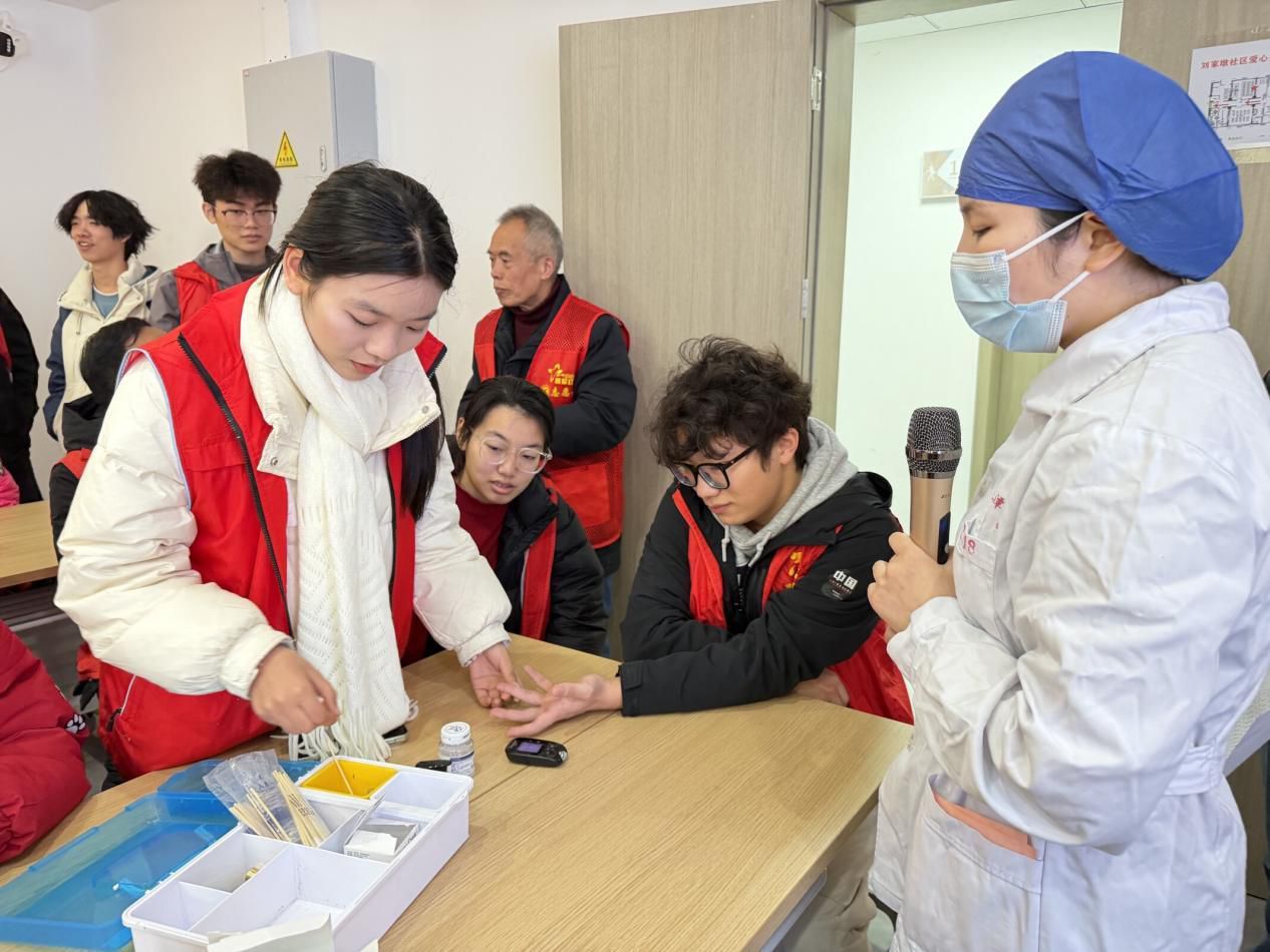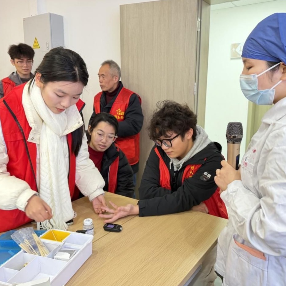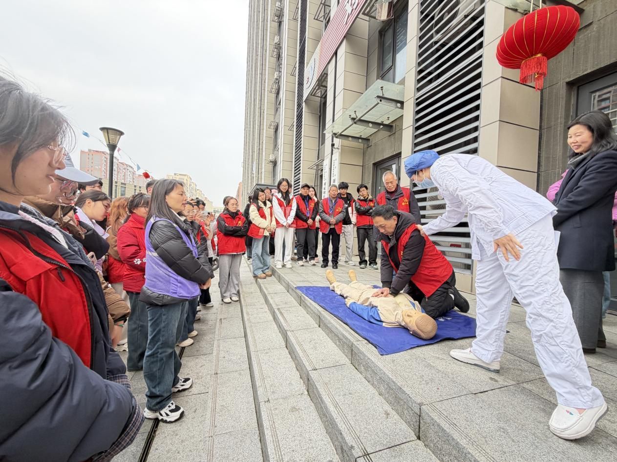 培训现场,金银潭医院急诊科医护人员围绕老年人常见健康问题展开实操教学,现场演示并指导急救技能、血压血糖测量等实操内容,采取“医护专家教骨干、骨干带新手”的梯级培训模式,有效提升志愿者队伍的专业素养和服务水平。