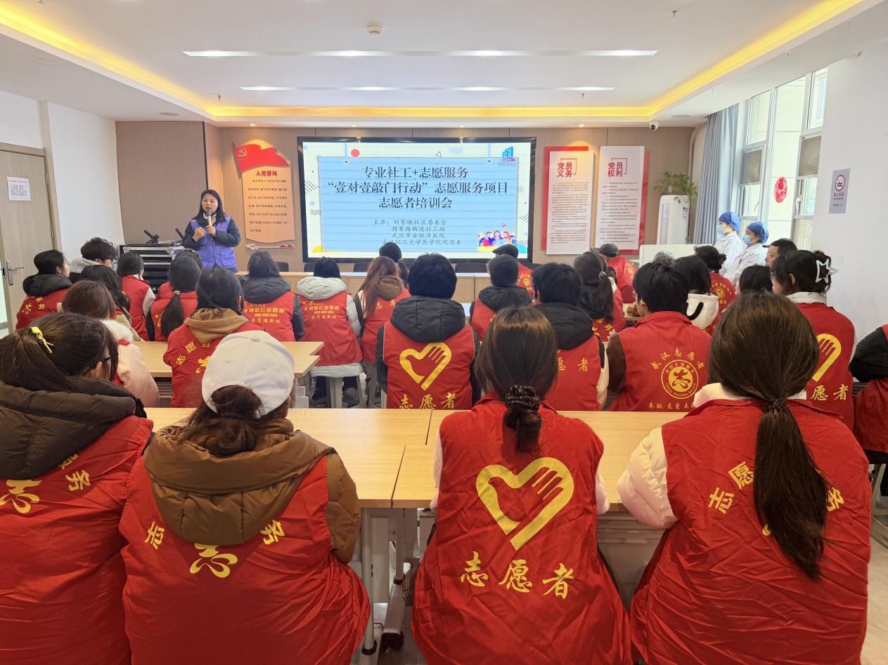 本次活动由社区居委会牵头,联合街道社工站、武汉市金银潭医院、武汉轻工大学医学院共同举办,对社区“壹帮壹”暖心志愿服务队50余名志愿者进行专业赋能,推动“专业社工+志愿服务”深度融合,为辖区高龄老人与特殊儿童送去精准暖心服务。