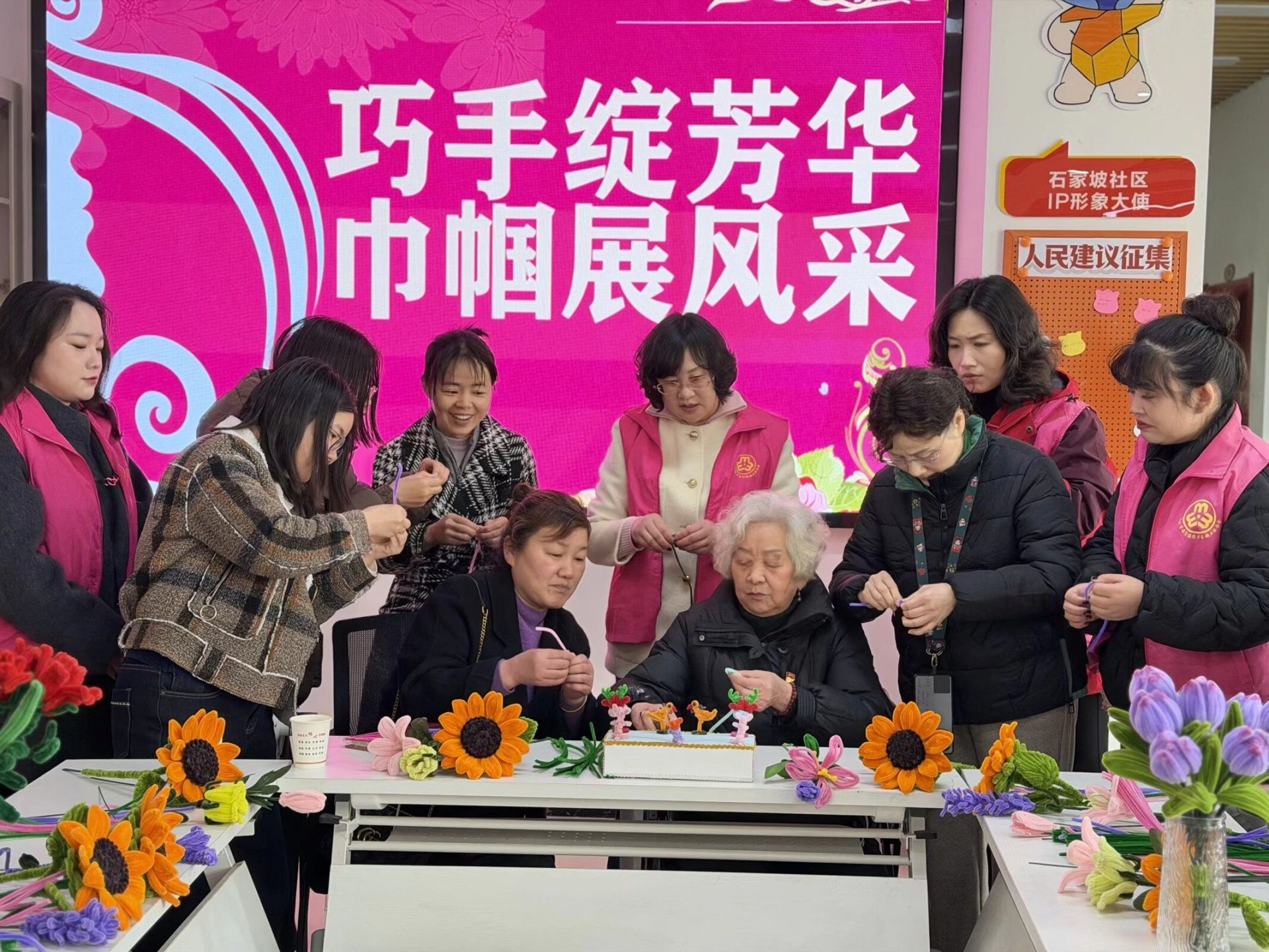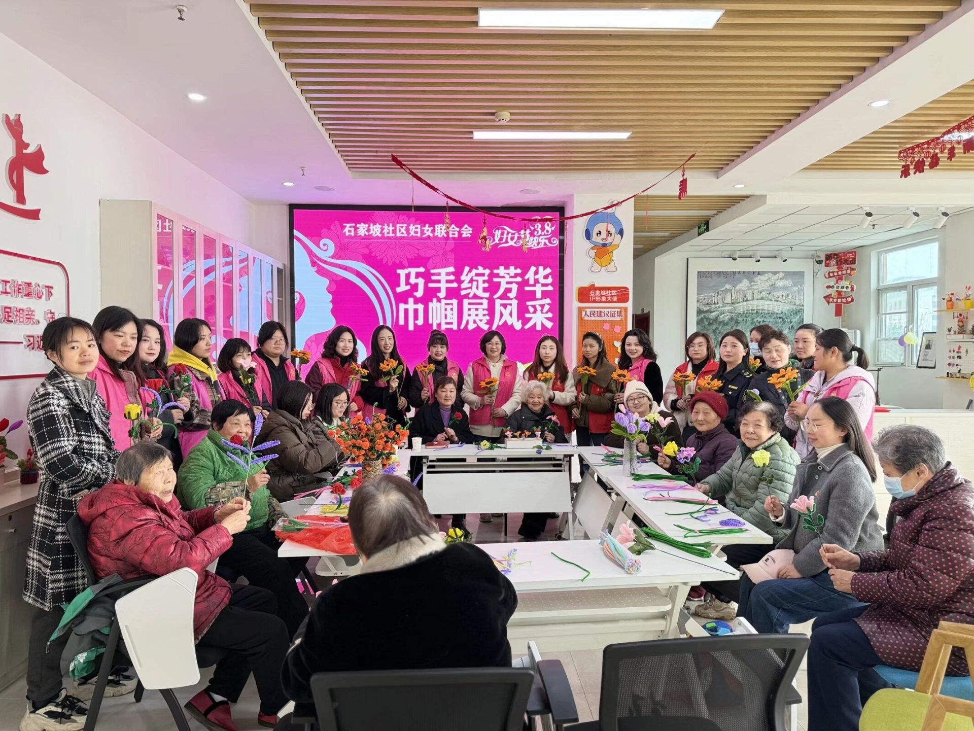 阳春三月,暖意融融。为庆祝第116个“三八”国际妇女节,丰富辖区女性居民的精神文化生活,展现新时代女性心灵手巧、热爱生活的精神风貌,3月6日上午,石家坡社区工会精心组织了一场以“巧手绽芳华,巾帼展风采”为主题的创意手工活动。活动特别邀请了辖区内的宝妈群体、爱好手工制作的居民欢聚一堂,在指尖流转中感受艺术之美,在交流互动中凝聚邻里之情。