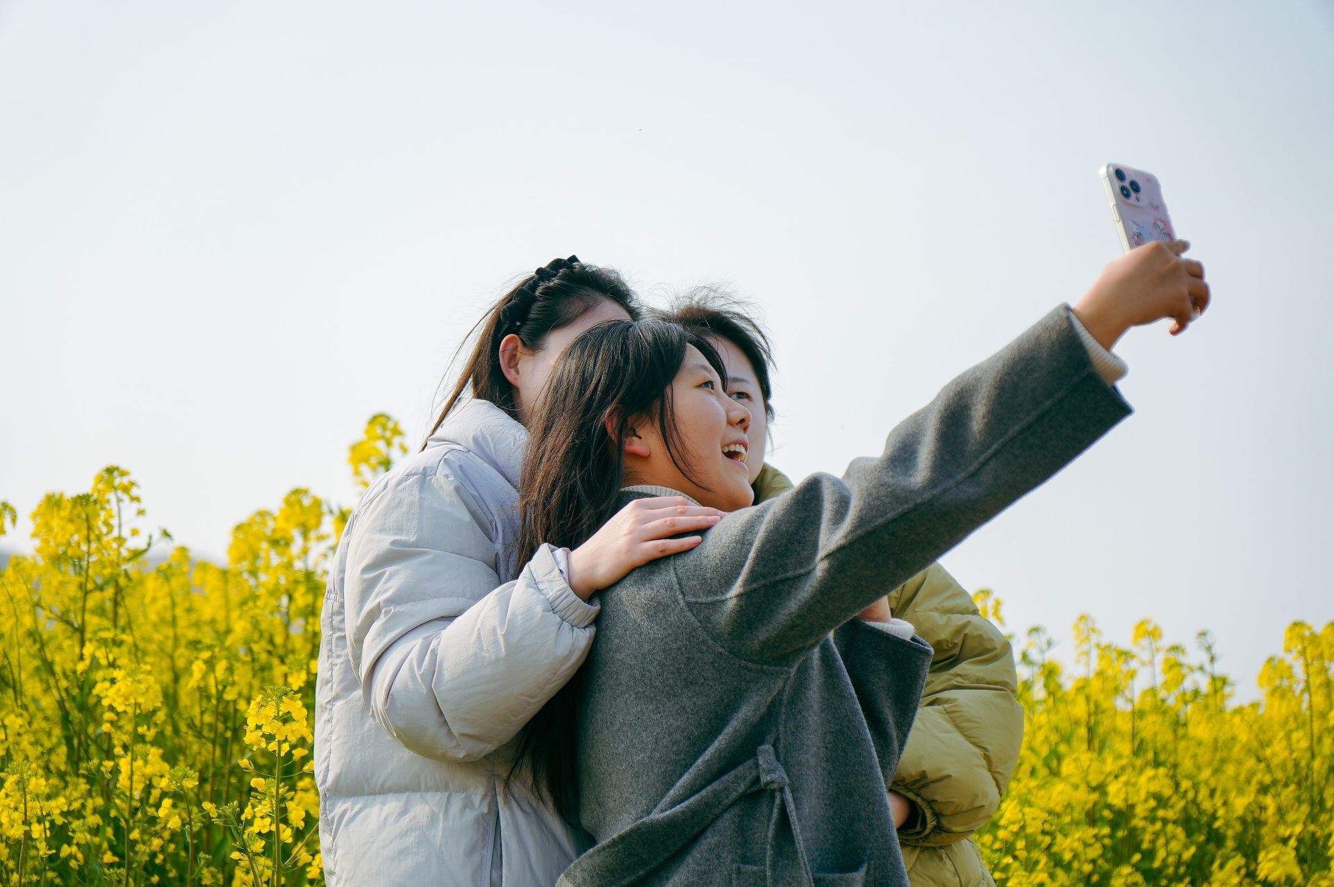 “今天来拍油菜花,刚好再多摘点儿苜蓿菜,我儿子很爱吃!”肖丹蹲在田埂旁,不一会儿就手捧一把嫩绿的苜蓿菜,脸上洋溢着收获的喜悦。闺蜜黄丽则在不远处发现了新“宝藏”,摘了一扎肥硕的野腊菜。短短一刻钟,四个闺蜜搭子都收获满满,随后便沉醉于这片金黄与翠绿交织的花海麦浪中,尽情凹造型,记录下这美好的春日时光。