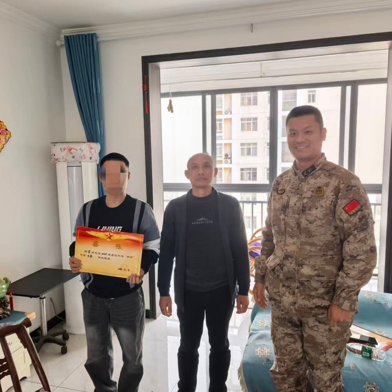 一纸喜报传荣光,拥军优属情意长。为弘扬尊崇军人、关爱军属的优良传统,切实把荣誉与关怀送到军人家庭,近日,走马岭街道退役军人服务站联合街道人武部、园林社区居委会,共同组成送喜报工作组,登门为辖区立功现役军人家庭送上喜报、慰问与祝福。