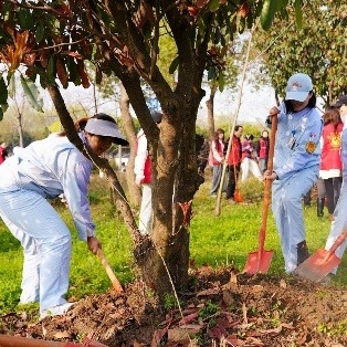 与此同时,全街11个社区分会场也同步行动。500余名社区工作者、志愿者、居民代表深入公园、小区绿地、背街小巷等区域,全面清理杂草垃圾、修剪枯枝、补植新绿。在团结大道社区,居民自发组队清理楼前绿地,将堆积的杂物彻底清除,让小区公共空间焕然一新;革新大道沿线,志愿者为新栽树苗加固支撑、精心浇水,细心呵护每一株新绿……不同年龄、不同身份的参与者默契配合,用双手扮靓家园,让“爱绿护绿”的文明新风在街头巷尾悄然扎根。
