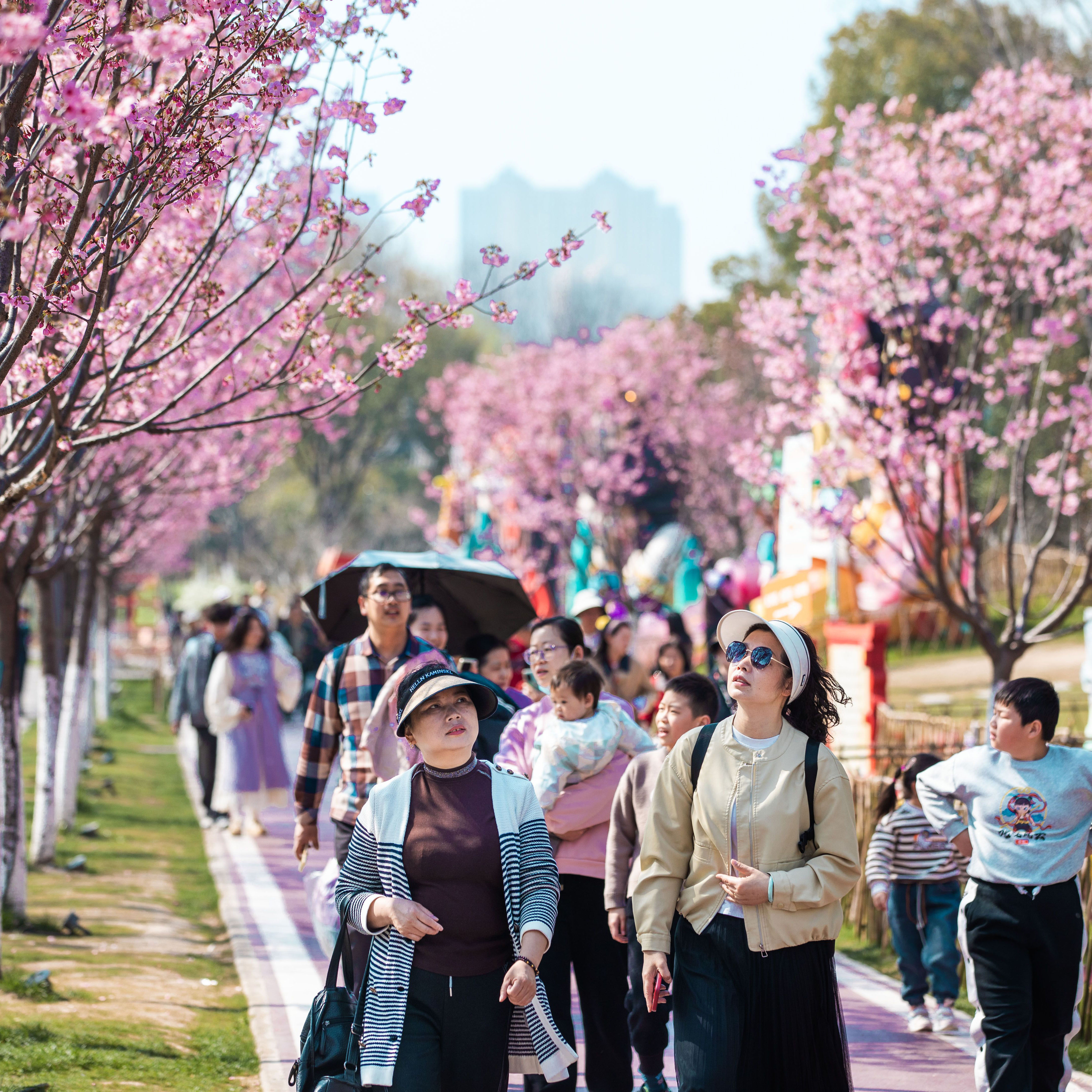 府河之南,各色郁金香争奇斗艳;汉江北岸,七彩花田里游人如织;园博园里,古装达人流连在樱花道上……