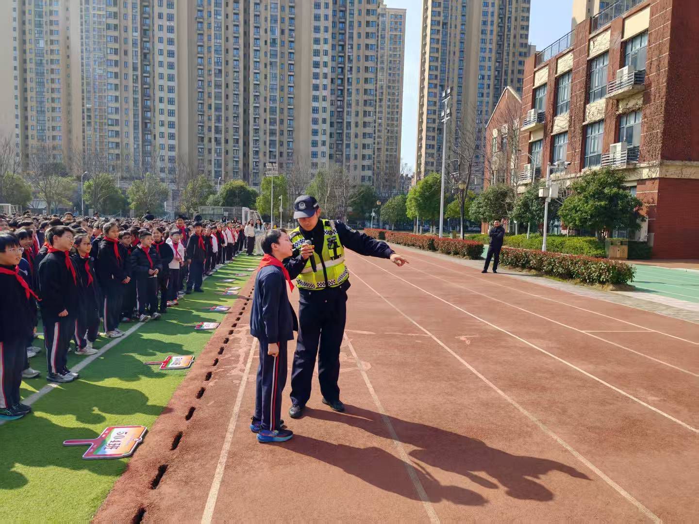 “做自己的首席‘安全官’,共同筑牢校园安全防线。”社区民警刘芳婷走进将军路中学操场,为全校师生带来一堂生动的安全教育课。她结合真实案例,从未成年人保护法、校园安全隐患等方面展开细致讲解,引导学生们树立“安全无小事”的意识。