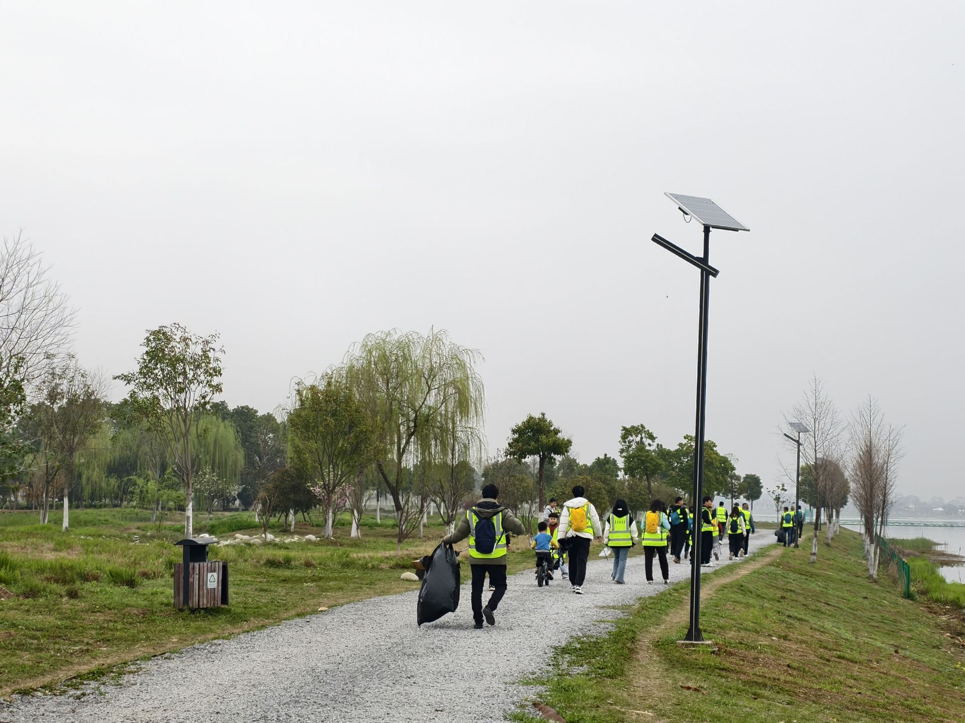 近2小时的活动中,大家分工协作、细致清理,将湖边散落的生活垃圾、白色污染物等逐一捡拾收纳,同时主动向沿途游客、周边市民发放宣传手册,面对面讲解日常节水小技巧、河湖保护法规及杜公湖生态治理成果。