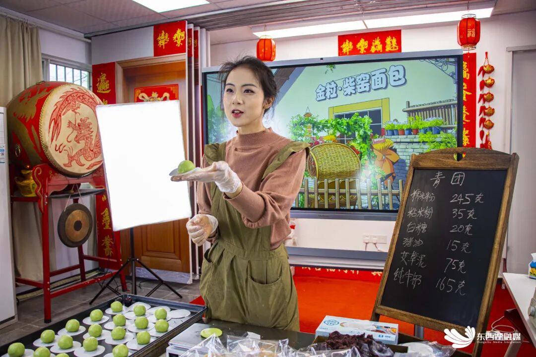 金丽直播制作青团。