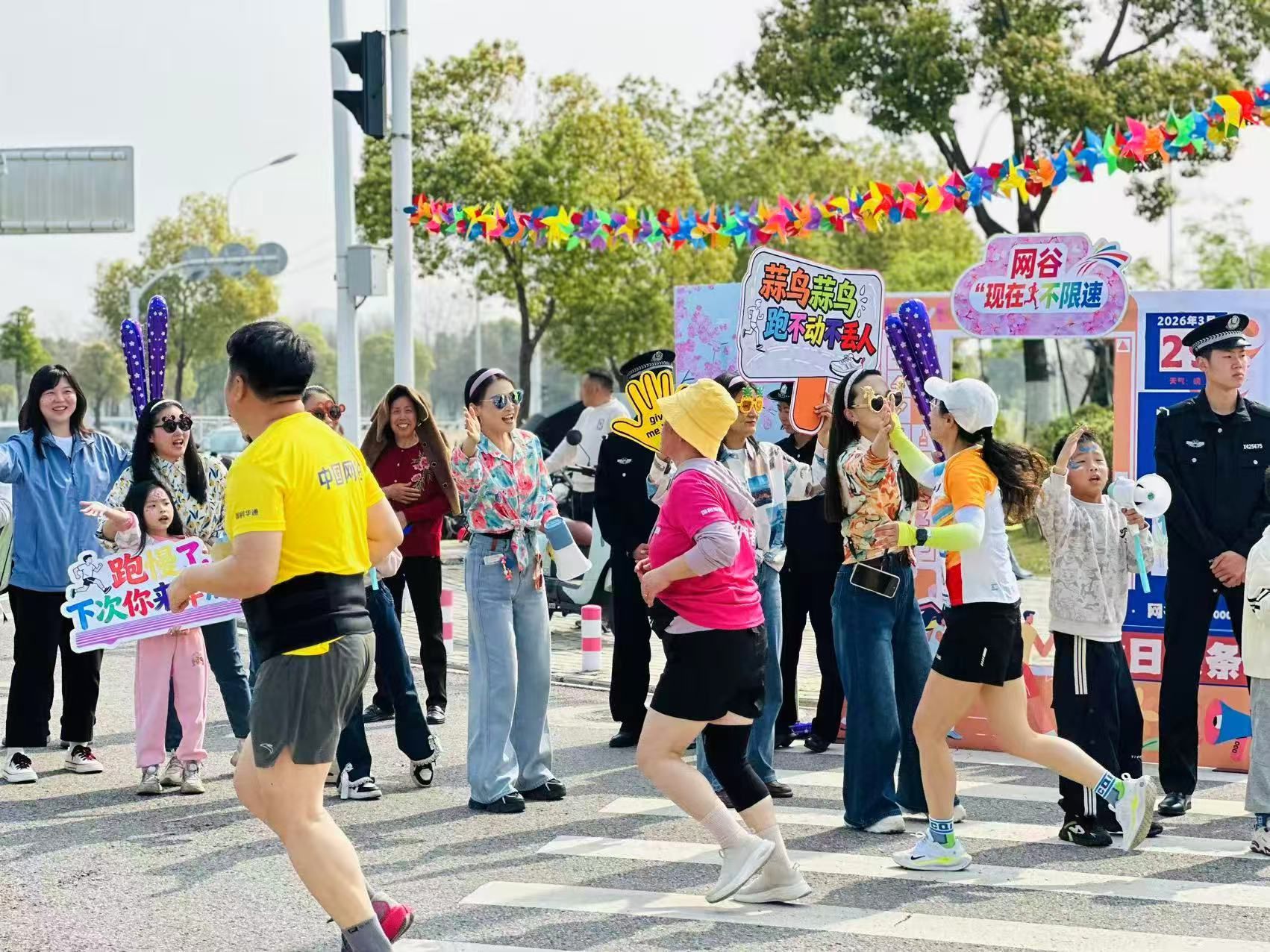 “加油!加油!”伴随着动感的音乐,5名身着港风穿搭的志愿者组成啦啦队,在赛道旁整齐划一地挥手、跳跃、呐喊。她们身穿碎花衬衣牛仔裤,搭配复古墨镜,既时尚又充满活力,成为现场最吸睛的焦点。“看到她们这么热情,我跑起来都更有劲了!”一位路过的选手竖起大拇指,与啦啦队员们击掌互动。这支啦啦队由社区居民自发报名组成,她们利用业余时间排练,只为在活动当天为选手们送上最真挚的加油。