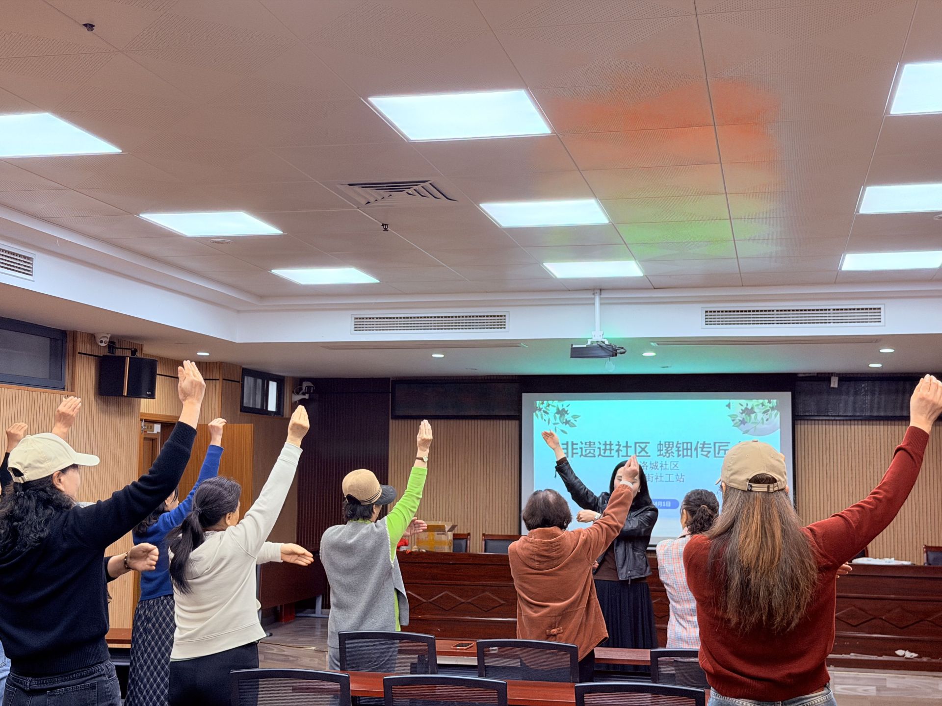 伴随着轻快的音乐,活动在趣味盎然的健身操中热闹开场。社工站老师带领居民们做起简单易学的动作,大家伸展手臂、迈开步伐,精神抖擞、笑容洋溢。短短几分钟的热身,不仅唤醒了身体的活力,更点燃了现场的热情,为接下来的文化体验营造了轻松愉悦的氛围。