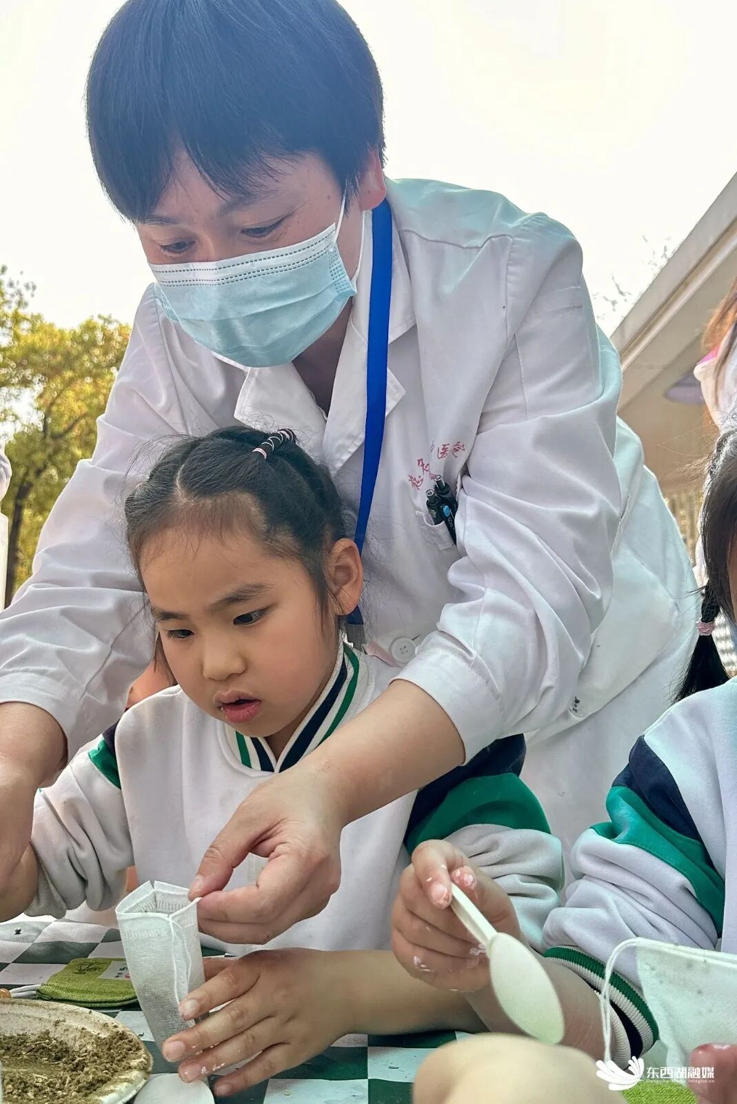 非遗传承区同样热闹非凡。剪纸、糖画,还有“小小中药师”体验活动,吸引了辖区里的孩子们。他们在志愿者指导下认识中药材、动手制作香囊,在寓教于乐中感受传统文化魅力。“孩子既能玩又能学,还能了解传统手艺。”带孩子参加活动的街坊夏婷说。