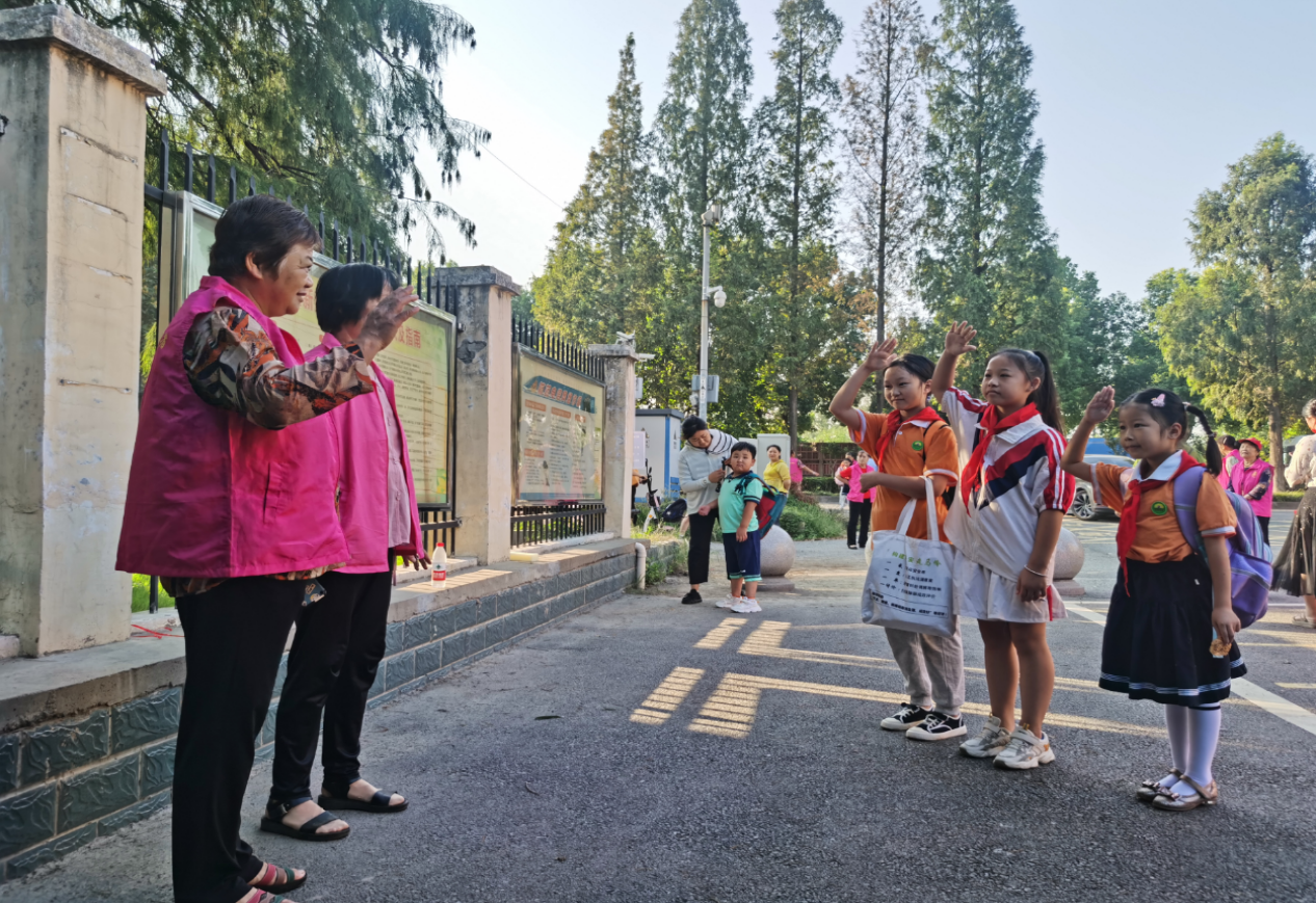 开学首日,“护苗队”在东方红小学开启“护学岗”项目。无论酷暑严寒,每天上下学时段,校门口总准时出现她们的身影。实行严格排班、双人值守,奶奶们不仅是“站岗者”,更是“疏导员”:引导车辆减速、护送孩子过马路、劝阻违规停车……雨天,她们撑伞提醒“慢点走”;烈日下,她们为忘戴帽子的孩子遮挡阳光。两年多的时光里,“奶奶护苗队”累计出动志愿者1000余人次,服务时长超过600小时。手中的小旗子挥动成孩子们眼中最安心的“信号”,校门口的拥堵时间缩短40%,家长违规停车减少60%。专业与温情,在她们的护学岗上完美融合。
