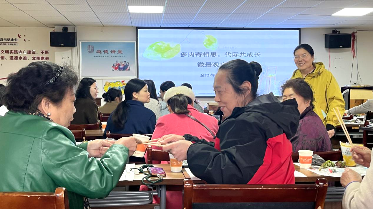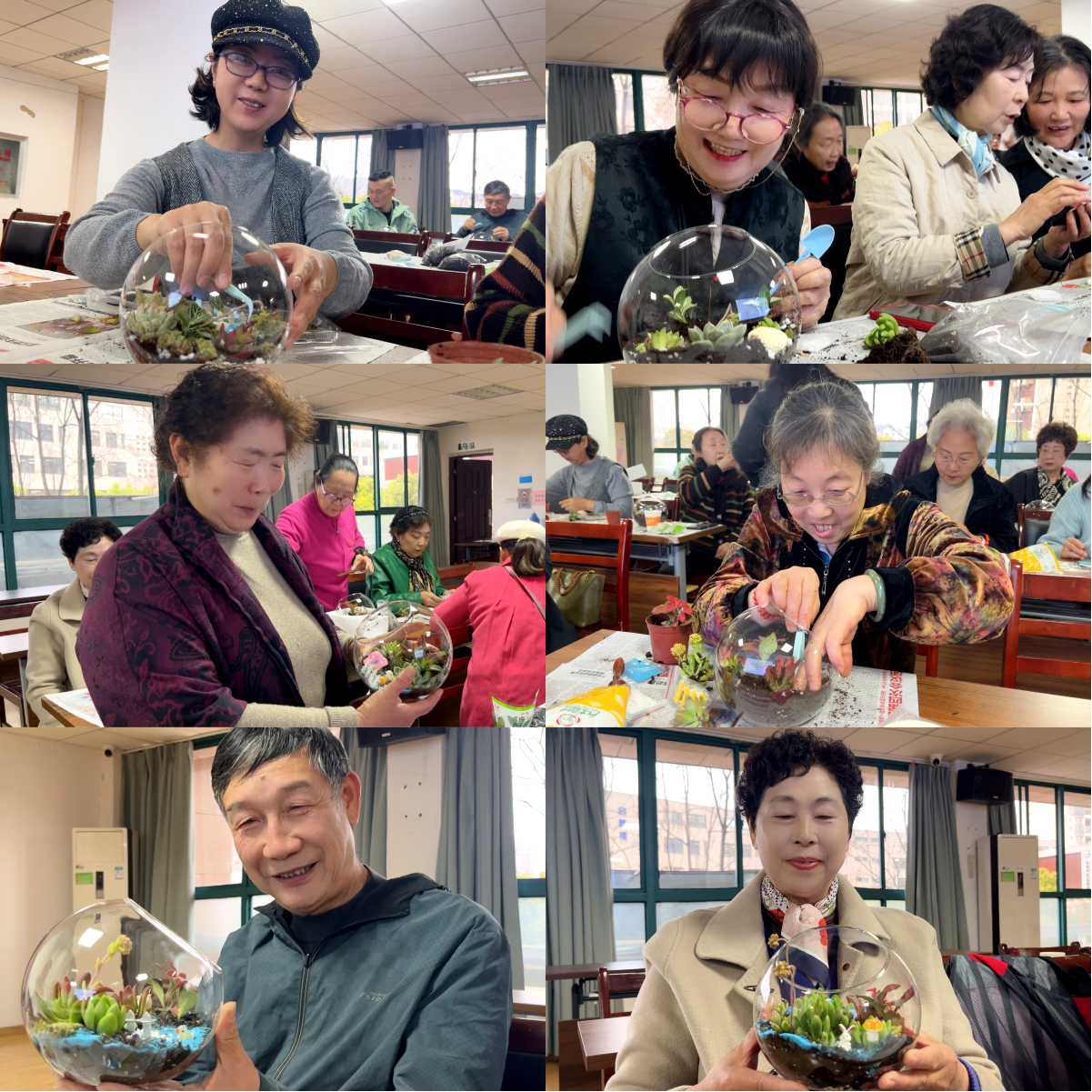 随后,老师将多肉植物的品性与清明寓意巧妙结合,向大家介绍道:“多肉植物耐旱顽强,于方寸之间便能迸发出蓬勃生机,这恰如先人留给我们的精神力量,也如长者历经岁月沉淀的从容与坚韧一样。”同时,老师还细致分享了多肉种植、浇水、养护的实用技巧,居民们听得专注、记得认真,不时点头互动、轻声交流,在轻松的氛围中汲取知识、感悟生命。