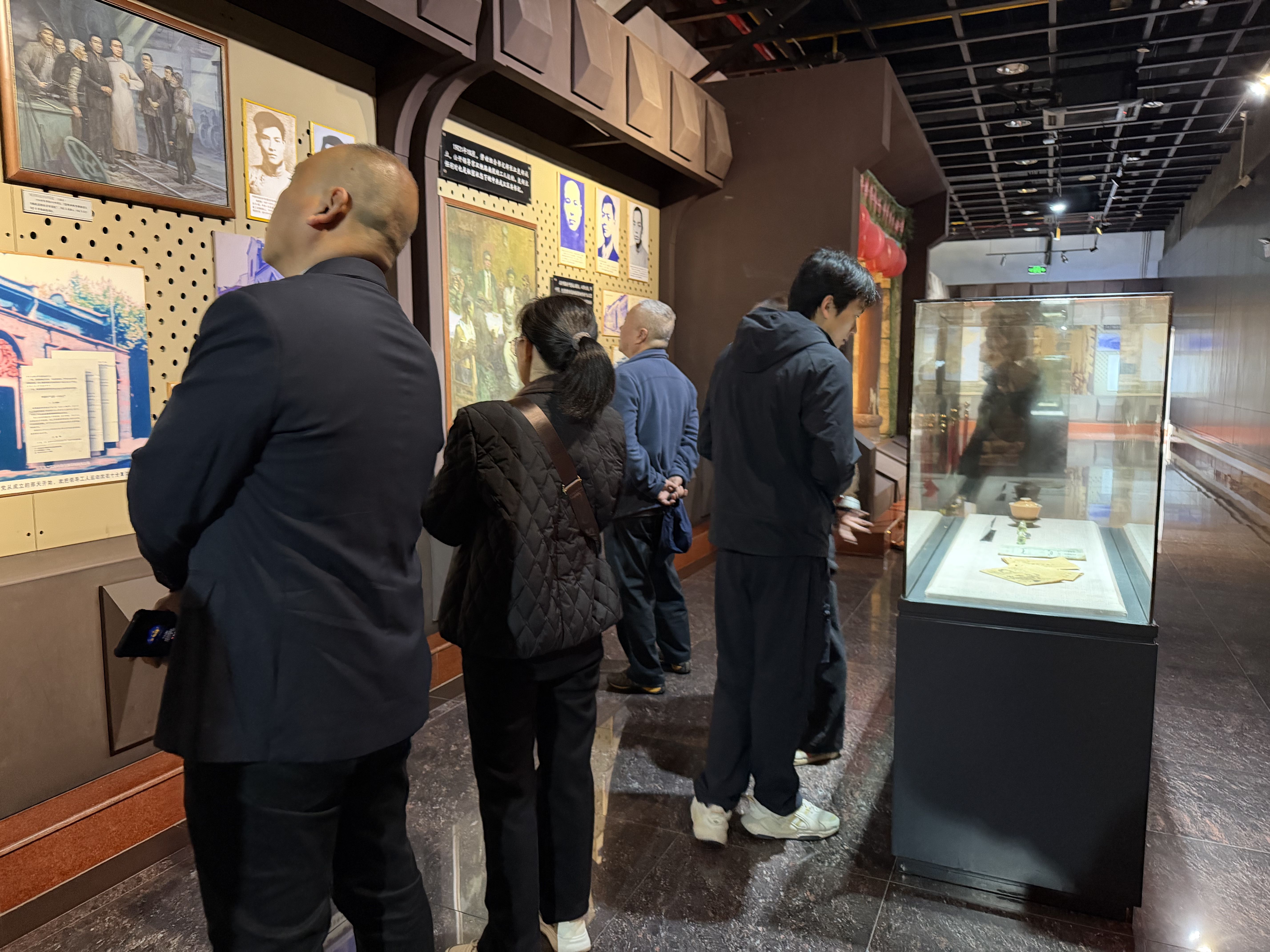 进入纪念馆展厅,面对鲜红党旗,全体党员高举右拳,重温入党誓词,铿锵誓言回荡在纪念馆,进一步坚定了理想信念与责任担当。随后在讲解员的引导下,众人通过珍贵历史文物、详实文献史料、复原场景及影像资料,全面回顾1923年京汉铁路工人大罢工的壮阔历史。大家驻足凝视、认真聆听,深刻感悟“头可断、工不可开”的铁血担当,领会坚定信念、团结奋斗、不怕牺牲、勇于担当的二七精神内涵。一件件饱经沧桑的文物、一个个感人至深的故事,让在场人员深刻认识到中国共产党领导工人运动的光辉历程与伟大意义。