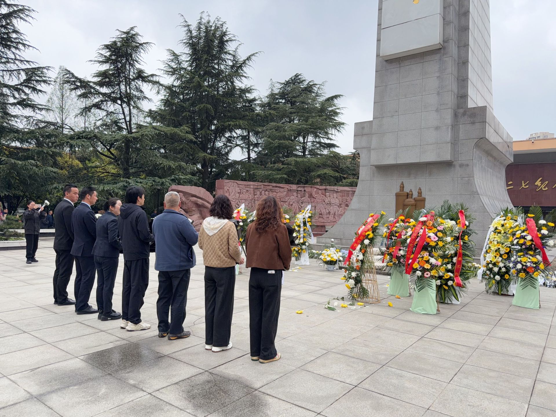 活动开始,全体党员佩戴党徽,怀着崇敬之心有序参观。在巍峨矗立的二七烈士纪念碑前,大家整齐列队、肃立默哀,向为民族解放与工人运动英勇献身的林祥谦、施洋等革命先烈敬献鲜花、三鞠躬,表达深切哀思与崇高敬意。