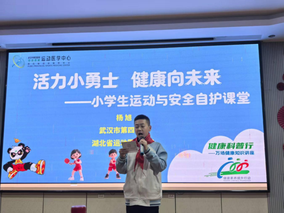 本期讲座以《活力小勇士,健康向未来》为主题,特邀留法医学博士、武汉市第四医院(区健康副校长派出单位、专家库组成单位)运动医学中心杨旭做客现场,为全校师生及家长送上了一堂内容丰富、实操性极强的健康科普课。